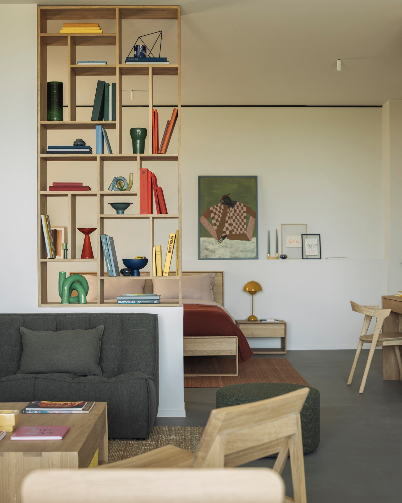 Ideal for a modern living room or a refined home office, the M rack complements a curated collection of leather-bound books, sculptural ceramics, or sleek metal accents. Positioning it alongside plush seating and a wool rug creates a tactile contrast that invites both comfort and visual interest, making it a central feature without overwhelming the space.