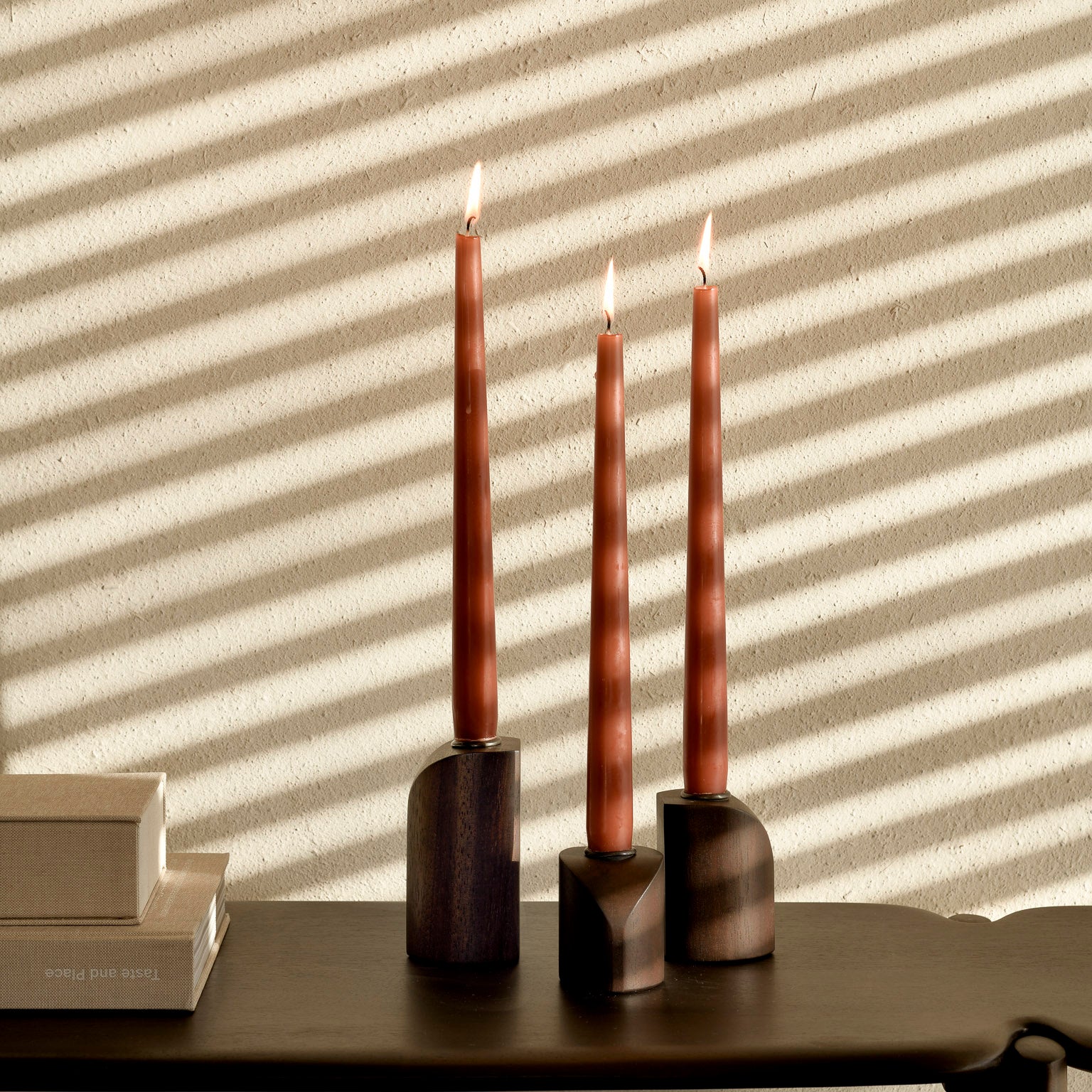 PI candle holders - varnished mahogany - dark brown - set of 3