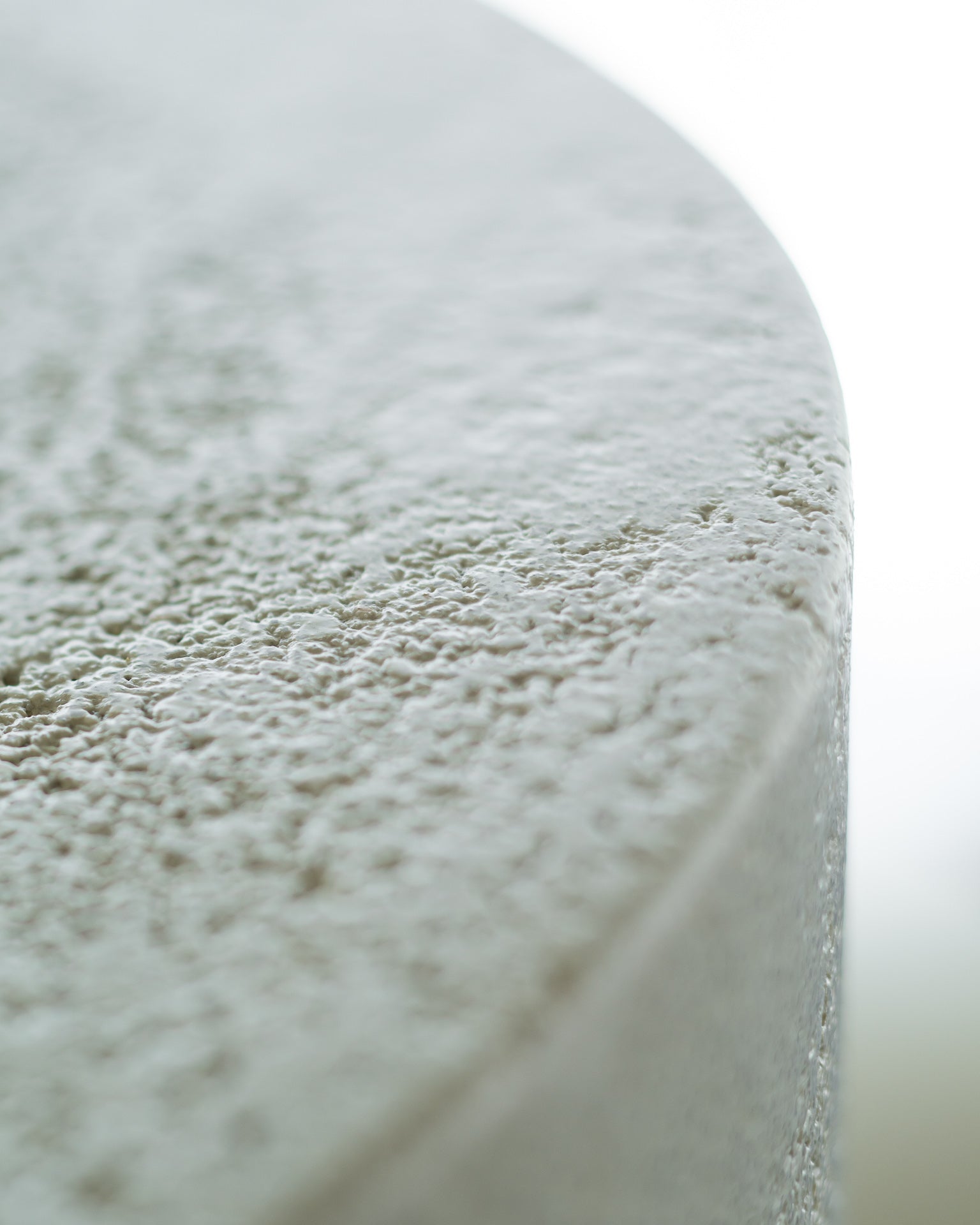 Beyond its visual appeal, the microcement surface adds a tactile dimension that is both cool to the touch and pleasantly matte, providing contrast against wood or textile furnishings. The coffee table’s solid construction supports everyday living, making it an excellent choice for families or anyone seeking a robust centerpiece that won’t demand constant upkeep.