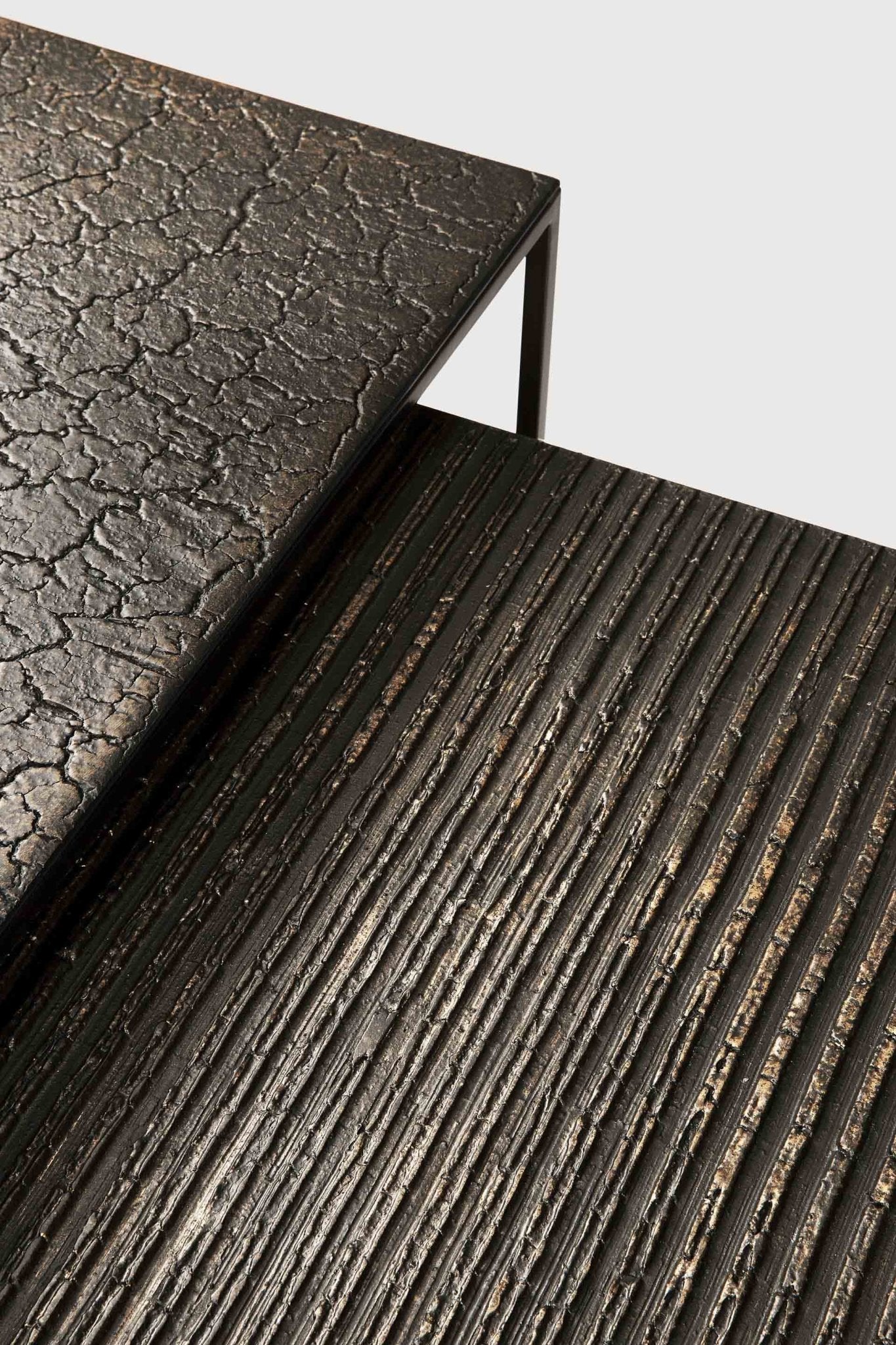 The Pentagon nesting coffee table set captures a strikingly geometric silhouette, marrying minimalist modernity with a touch of organic warmth through its whisky-toned varnished Minerals finish. Each table’s rectangular form interlocks effortlessly, inviting a fluid interaction between space and function, while the subtle asymmetry of the design introduces an architectural intrigue that anchors contemporary living areas with quiet confidence.