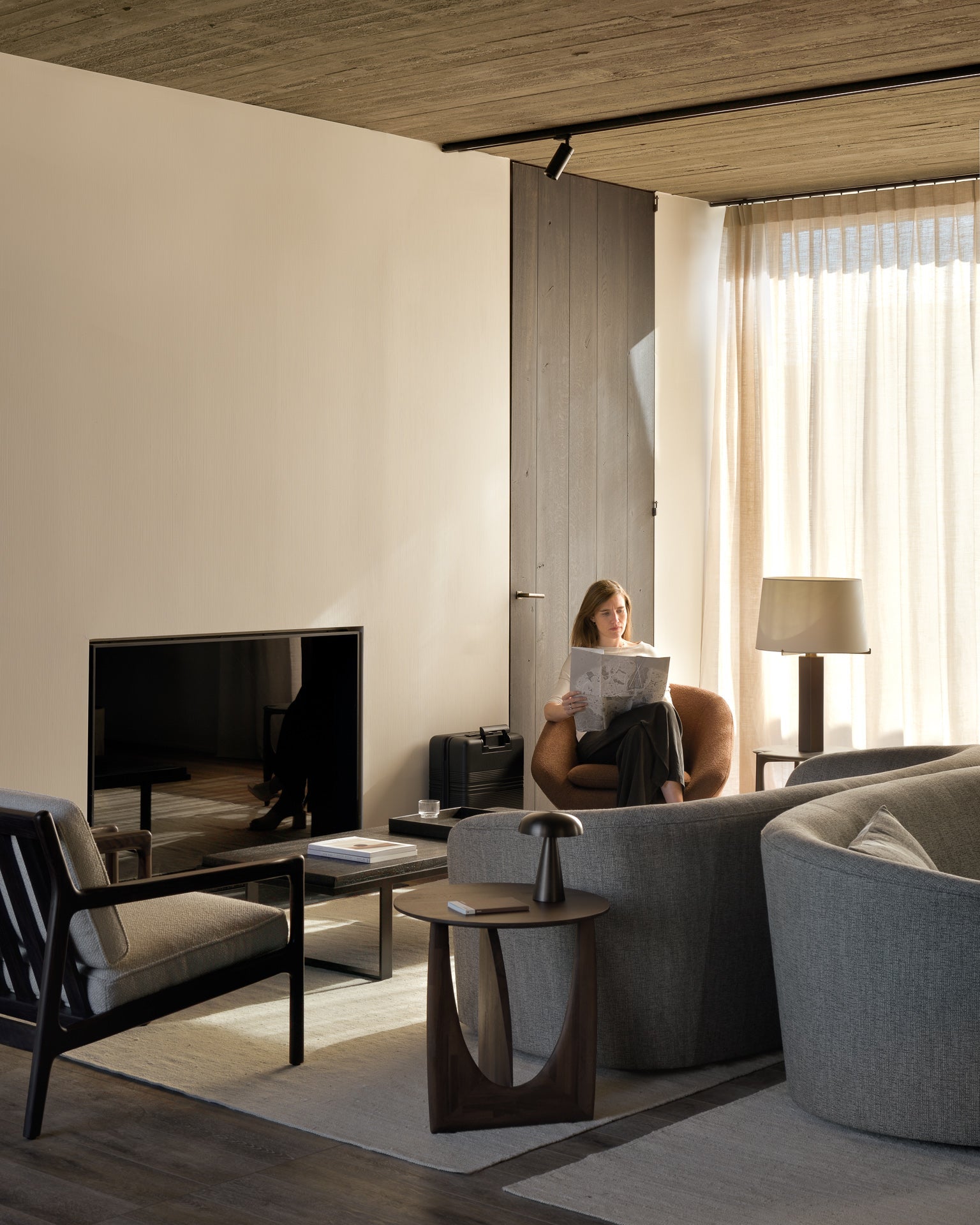 The Barrow lounge chair presents a sleek silhouette that balances mid-century modern warmth with contemporary comfort, its copper fabric upholstery adding a distinctive warmth and depth to any setting. Crafted by Ethnicraft, this piece embodies a narrative of understated elegance, where clean lines meet a subtle industrial edge, creating a chair that invites both relaxation and admiration.
