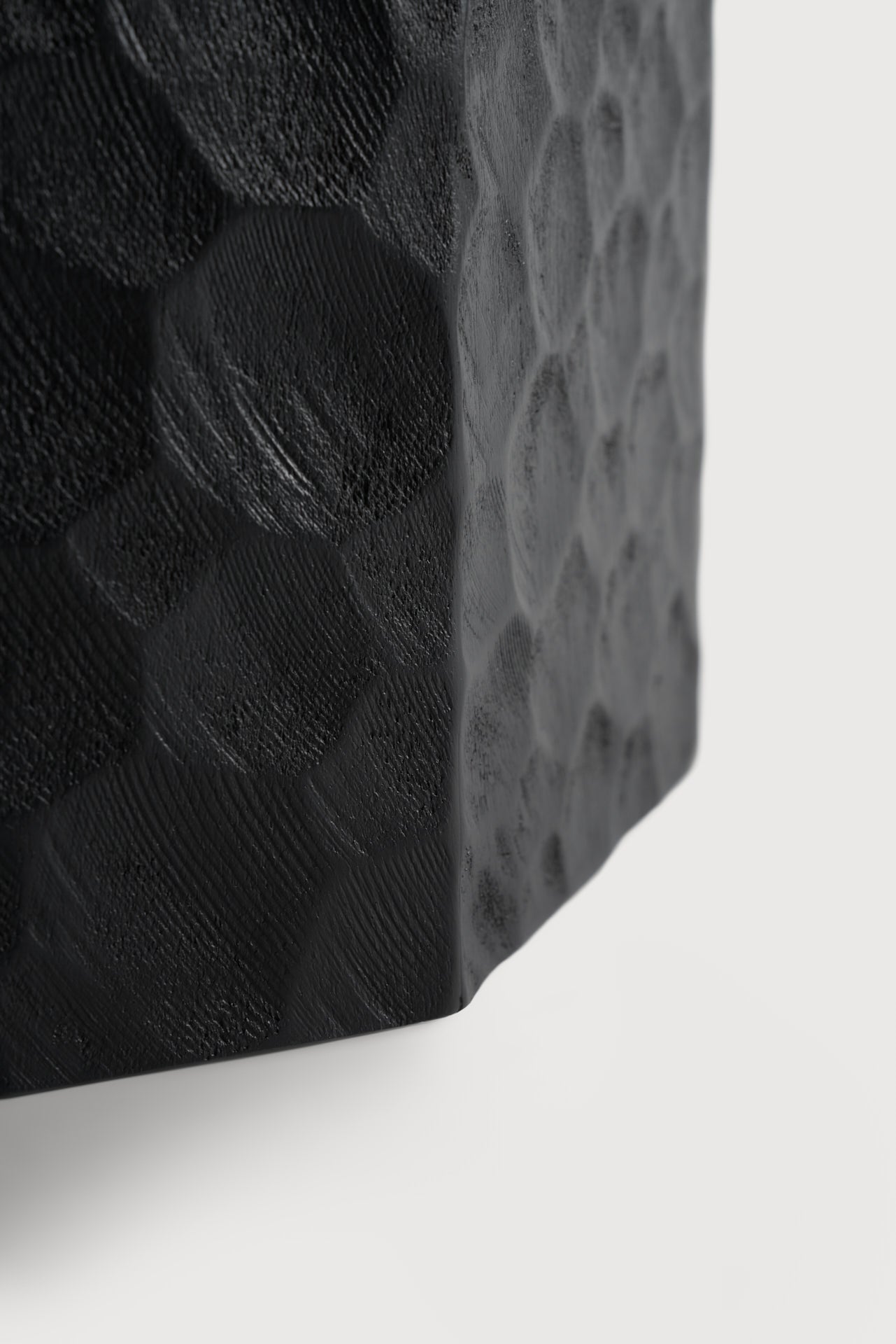 Crafted from varnished mahogany, the Chopped paper basket by Ethnicraft merges artisanal skill with practical design. Its sleek black finish accentuates the wood’s natural grain, offering a striking contrast that enhances the basket’s sculptural form. The textured, chopped effect in the construction adds an element of tactile intrigue, making it both a functional piece and a statement accessory within any space.
