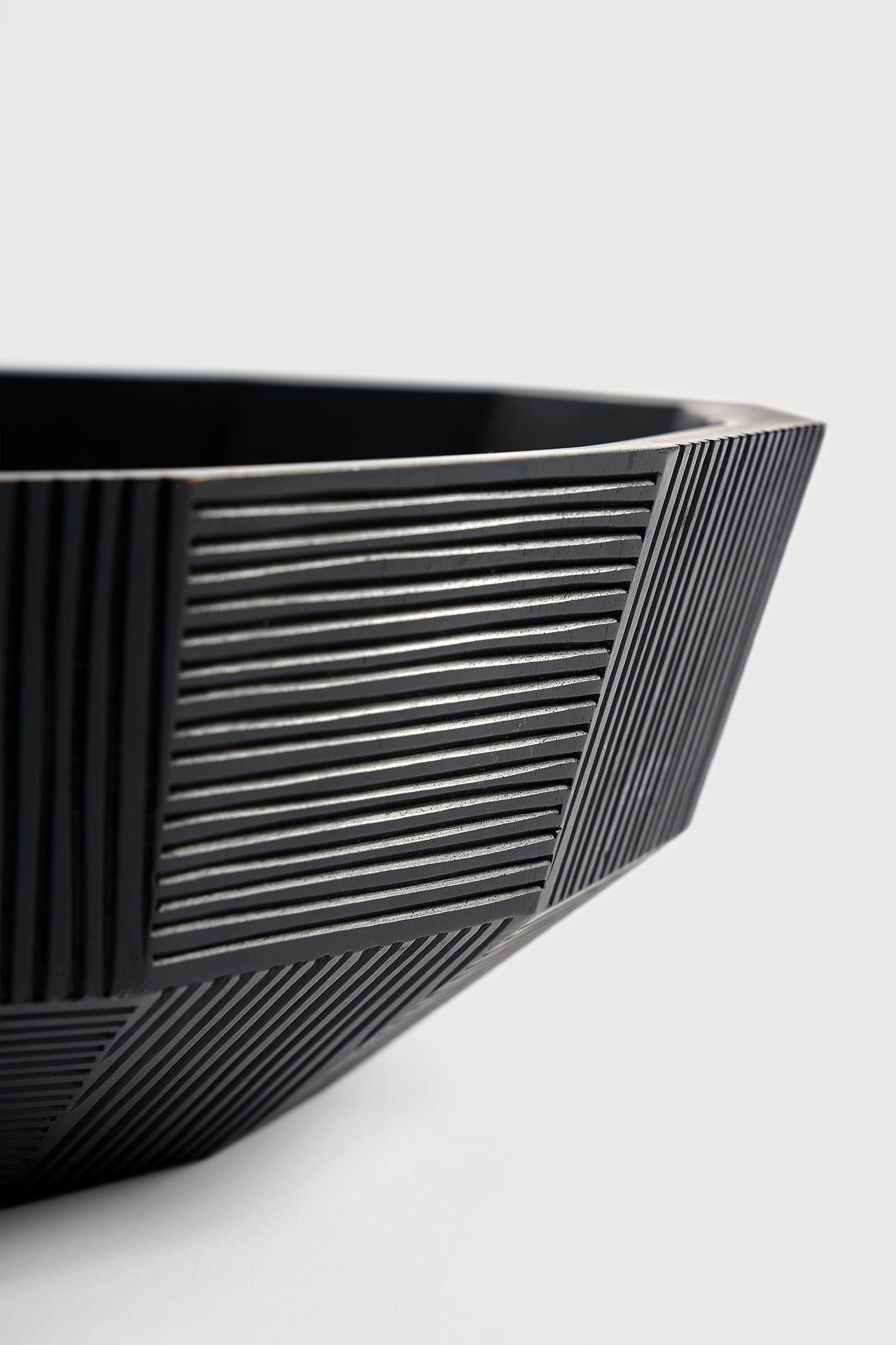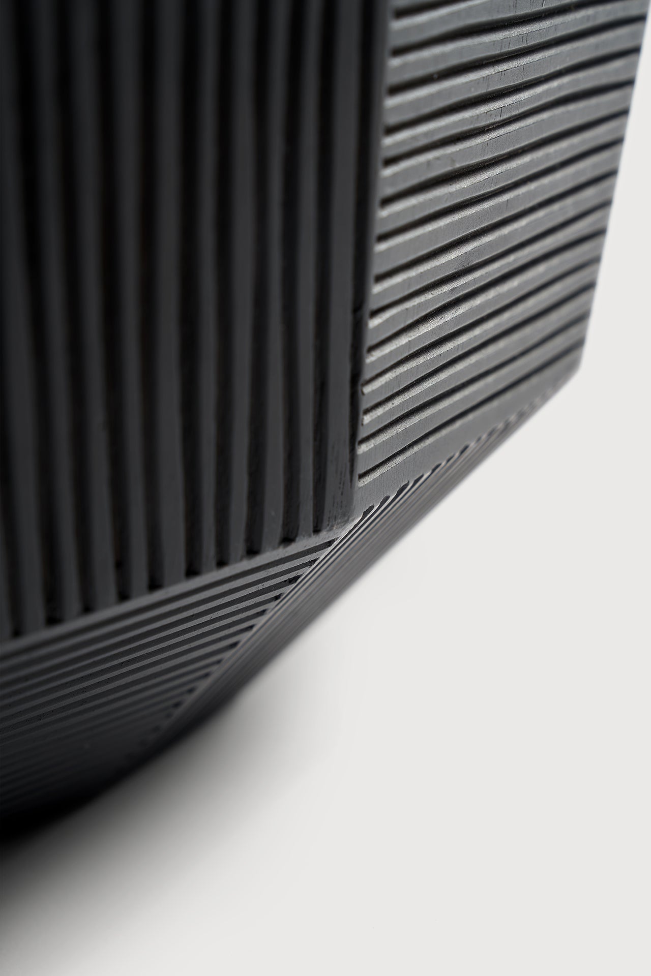 Crafted from varnished mahogany, this striped bowl by Ethnicraft captivates with its rich, dark hues and a tactile finish that celebrates the natural grain of the wood. The sleek black varnish enhances the bowl's elegant contours, reflecting both light and shadow to create a subtle interplay that draws attention without overwhelming surrounding décor.
