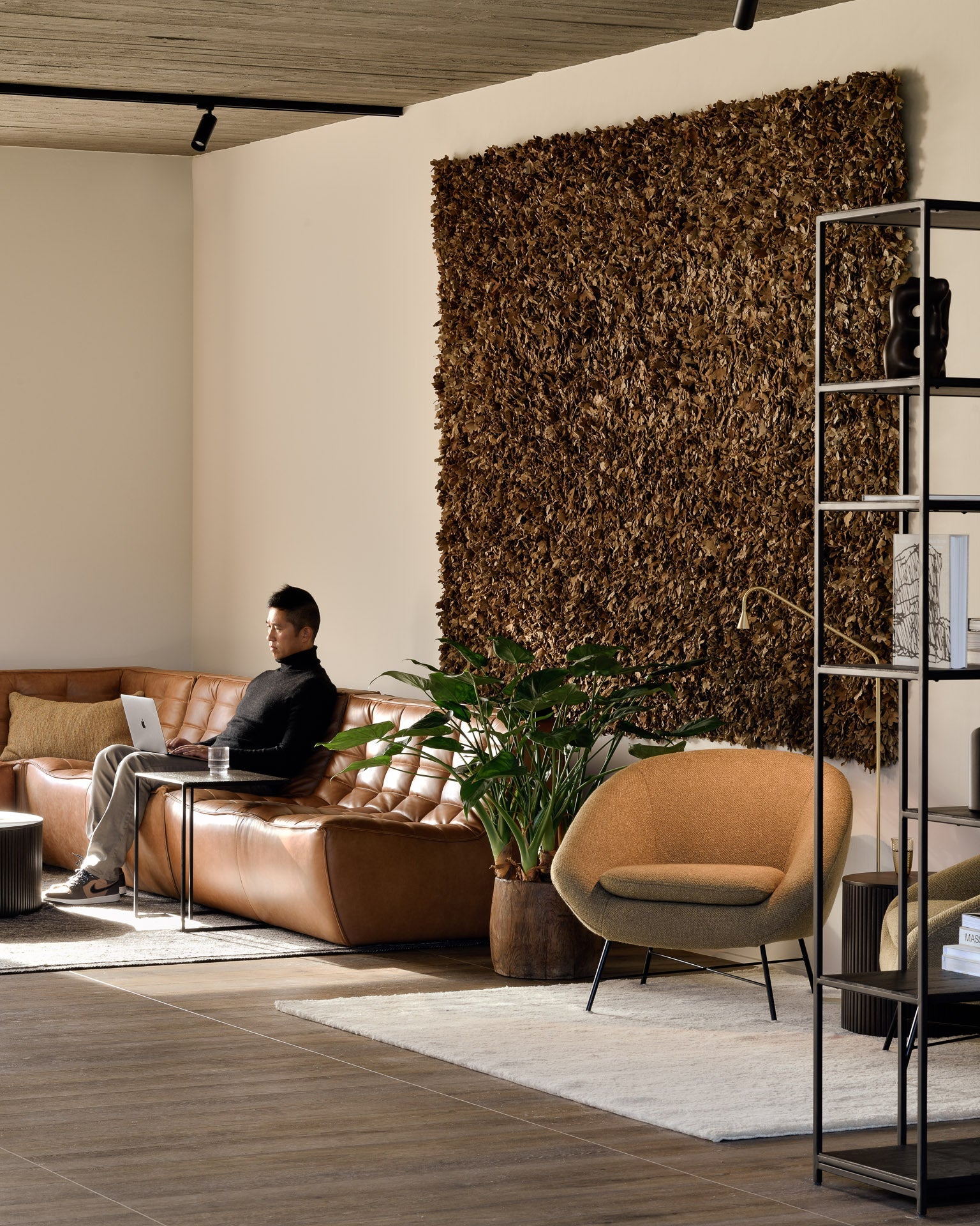 Perfectly suited for a refined living room or a modern office space, this piece functions as both a statement shelf and an organizational hub. It delivers a grounded, yet airy feel, ideal for showcasing curated collections of books, art objects, or elegant ceramics. The subtle complexity of the Studio rack’s materials and finishes makes it equally compelling in a minimalist setting or layered within a more eclectic interior, contributing an element of quiet strength and artisanal mastery.
