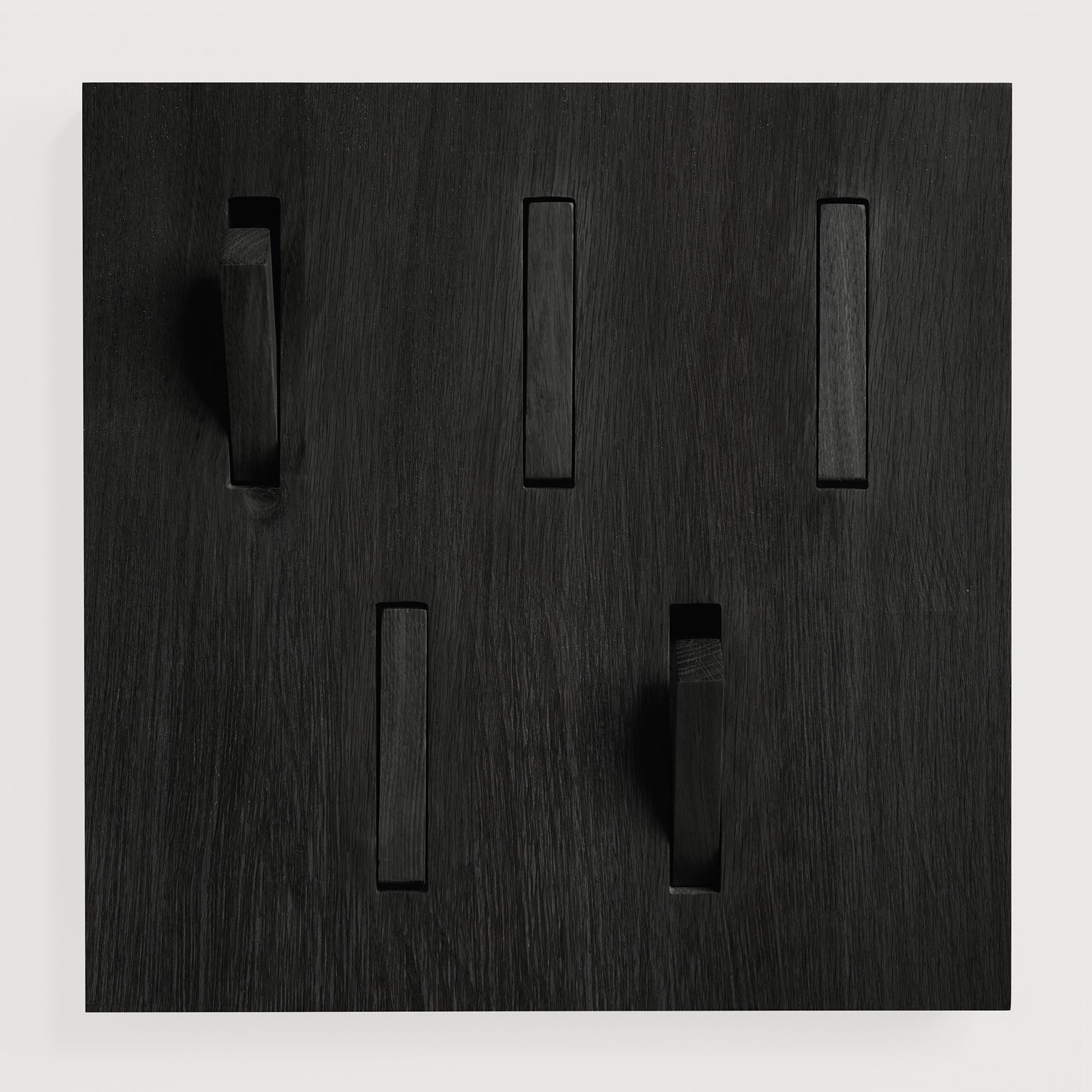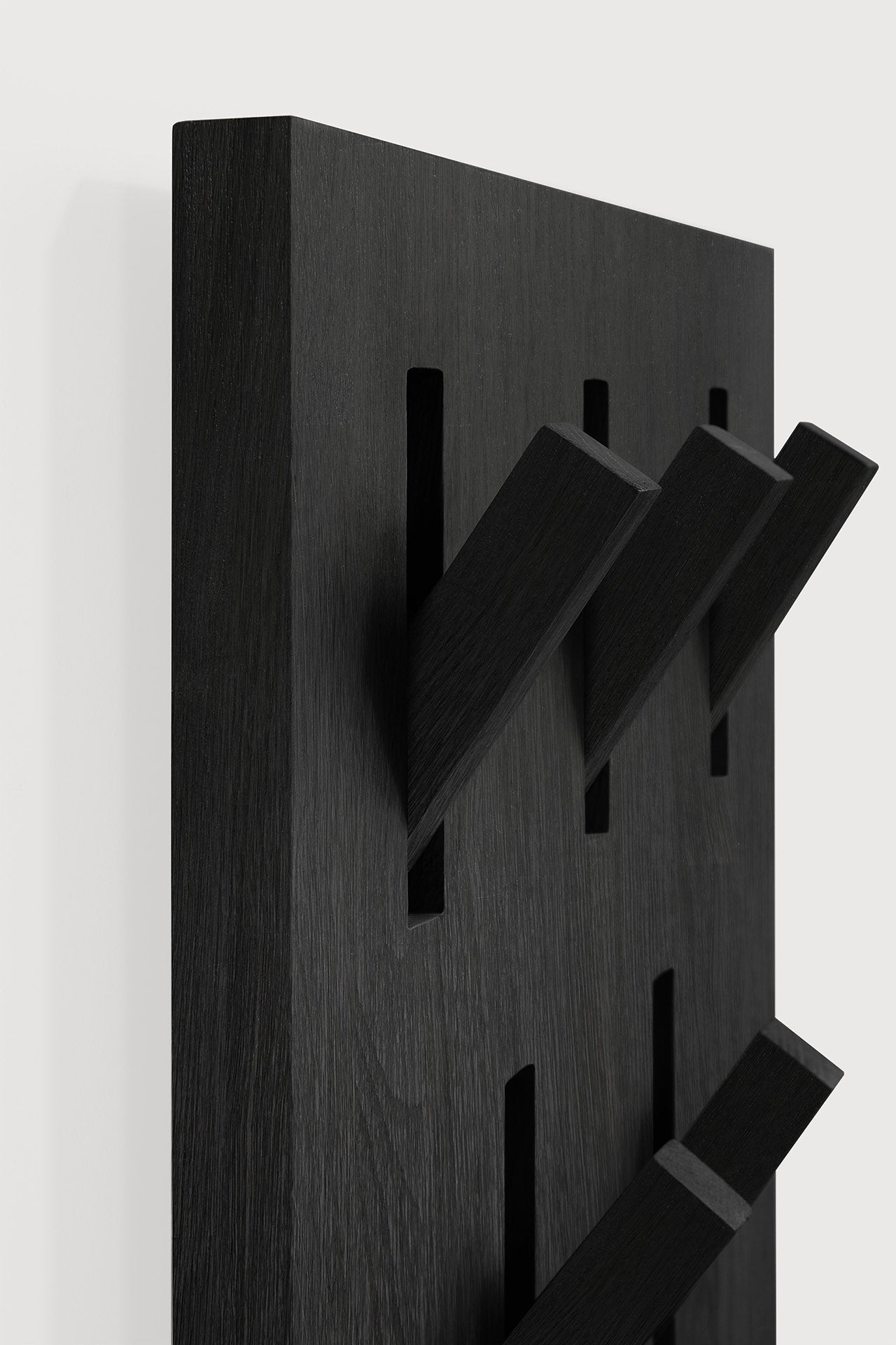 Maximize your entryway or office space with the Utilitile wall hanger by Ethnicraft, designed for seamless organization and lasting durability. Crafted from varnished oak, this wall-mounted piece offers a sturdy yet elegant solution for keeping coats, bags, and hats neatly accessible while enhancing your room's aesthetic. The natural grain of the oak, combined with a sleek black finish on its five robust hangers, provides a striking contrast that complements both modern and classic interiors.