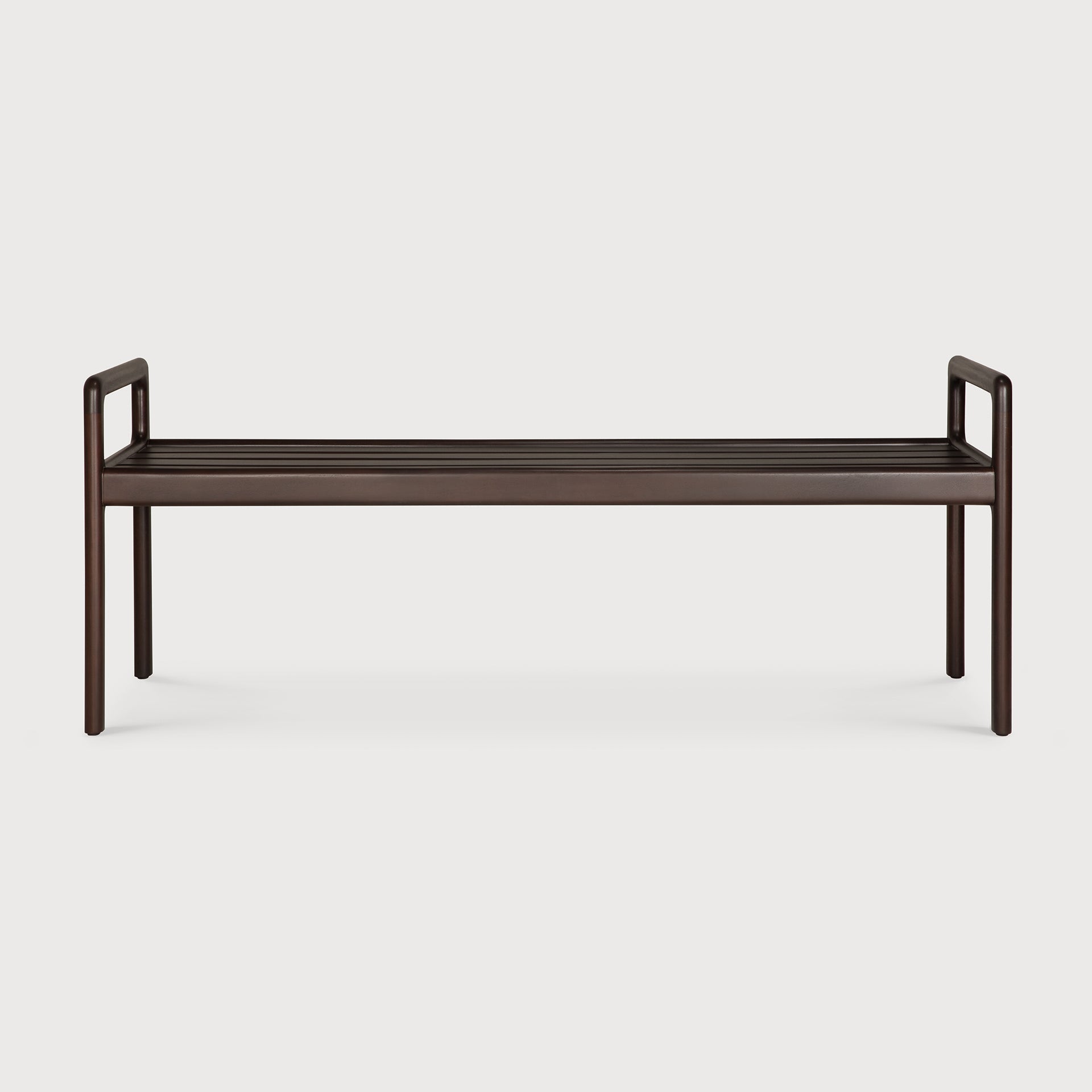 Crafted from rich mahogany, the Jack bench frame showcases a deep, dark brown varnish that brings out the wood’s natural grain with subtle luster. The varnish not only enhances the visual appeal but also provides a smooth, tactile finish that invites gentle touch and adds durability to everyday use. The solid wood frame is meticulously joined with clean lines and seamless connections, highlighting the artisanal craftsmanship integral to Ethnicraft’s design philosophy.