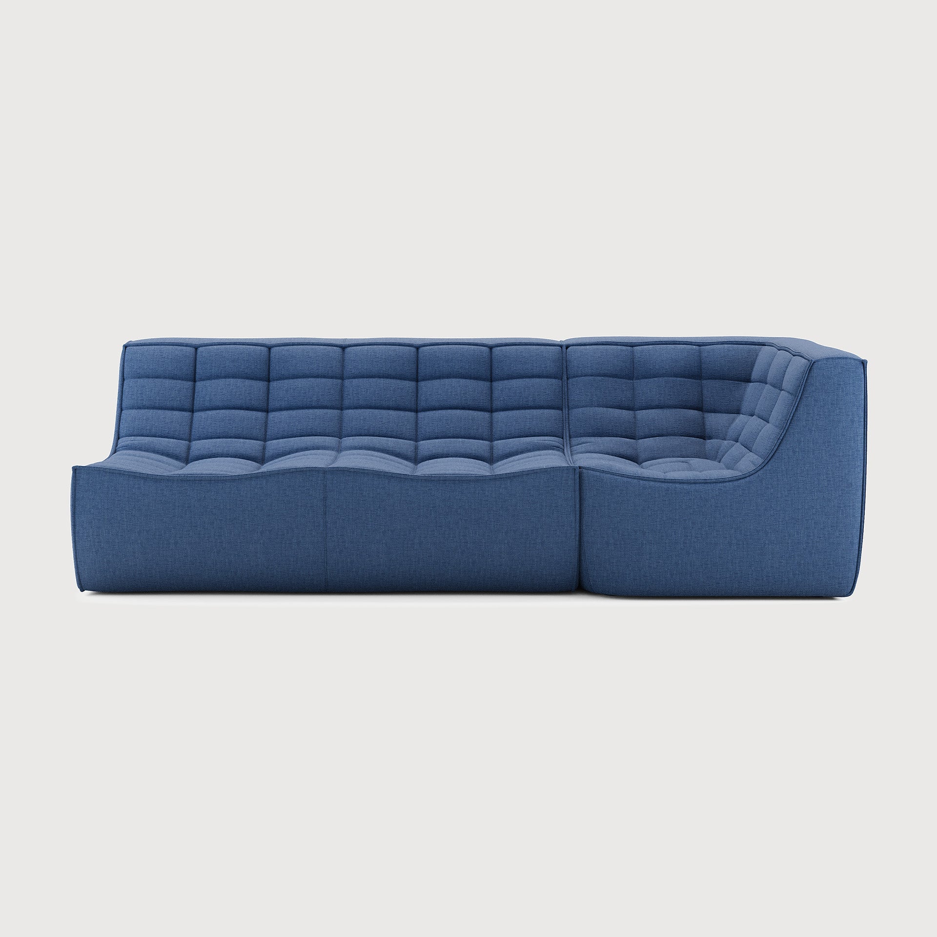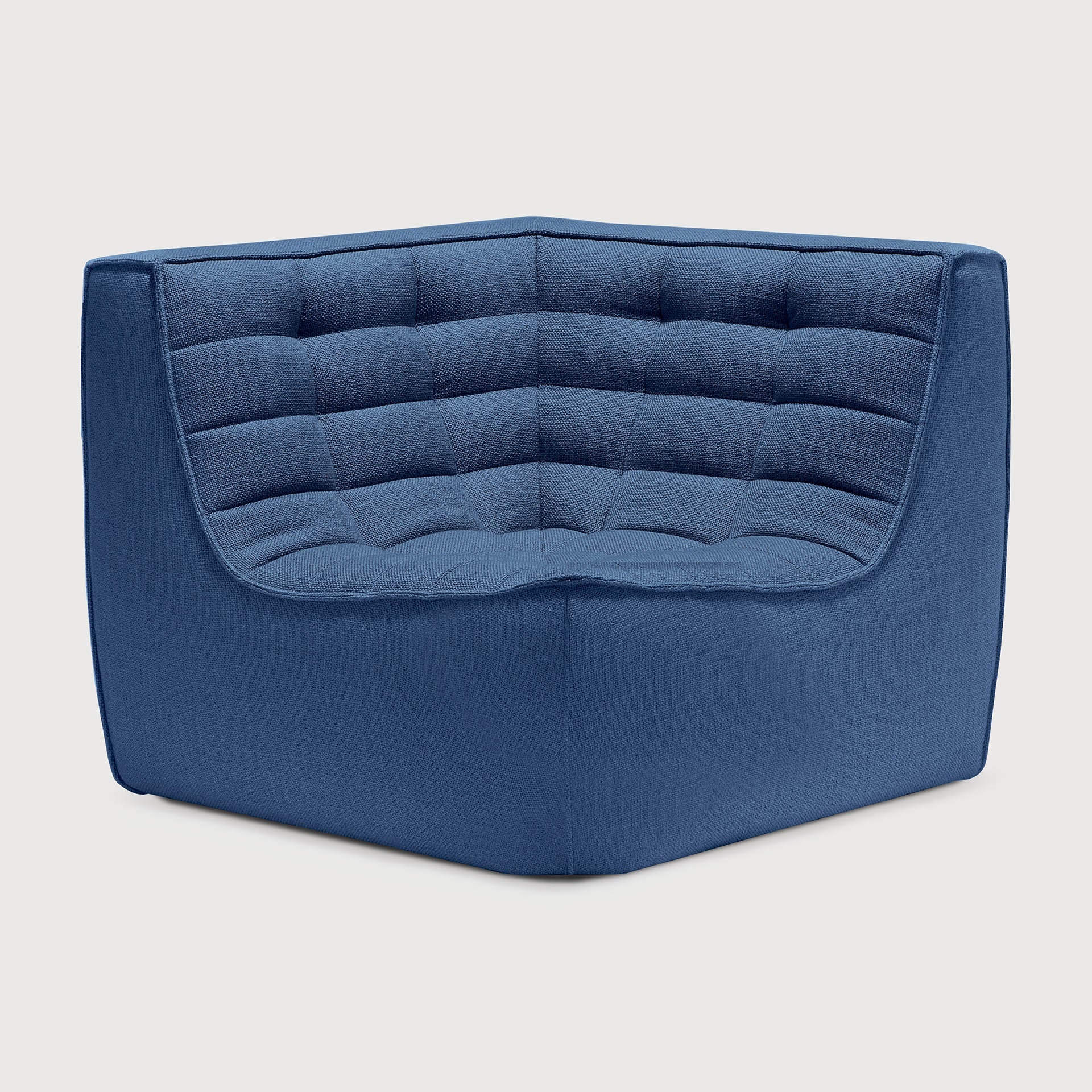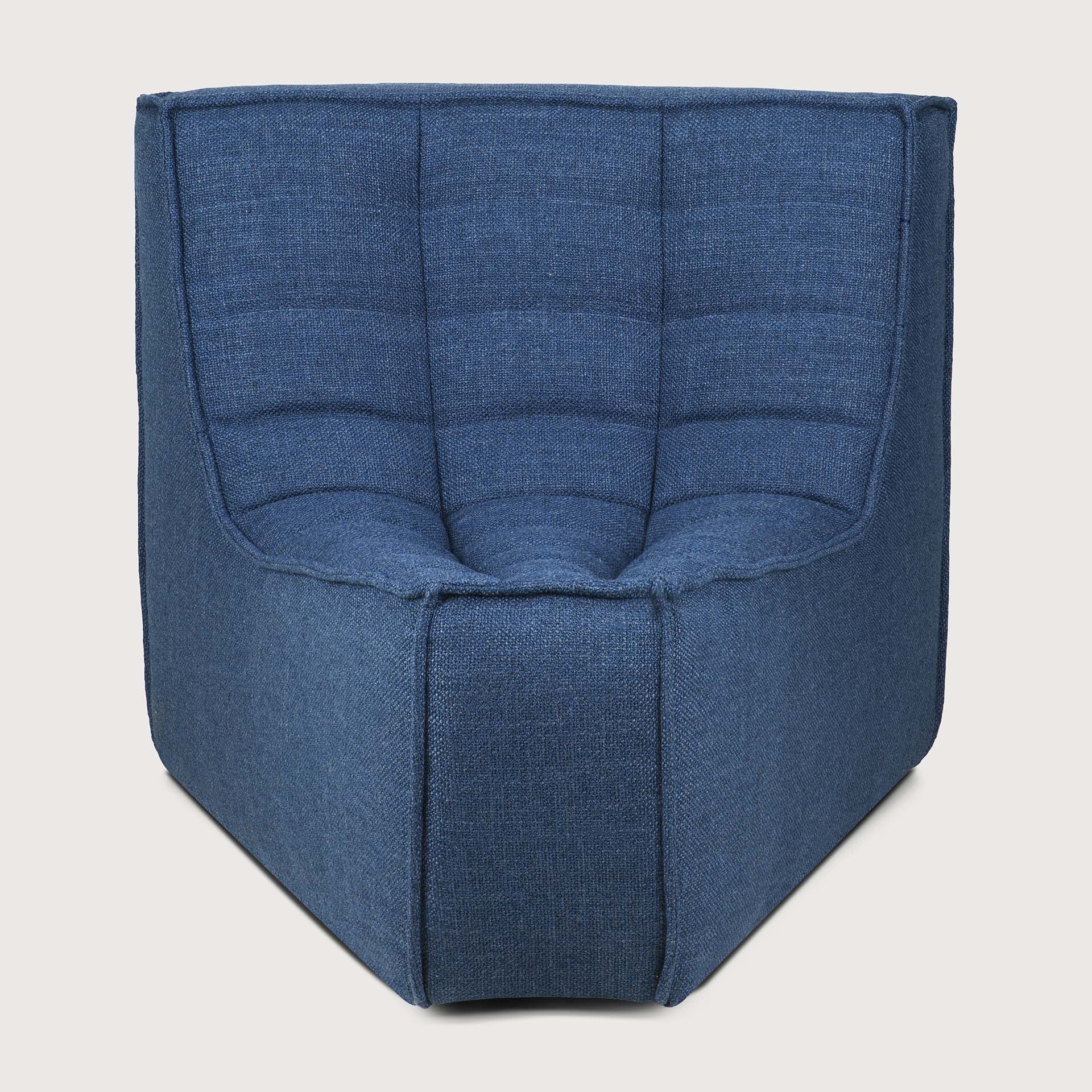 The N701 modular sofa by Ethnicraft stands as a testament to thoughtful design married with everyday comfort. Draped in a rich blue fabric, this 90° square corner piece offers a striking visual anchor, its clean lines balanced by the subtle texture of the upholstery. The shade evokes the serene calm of evening skies, inviting quiet moments or animated conversations with equal ease.
