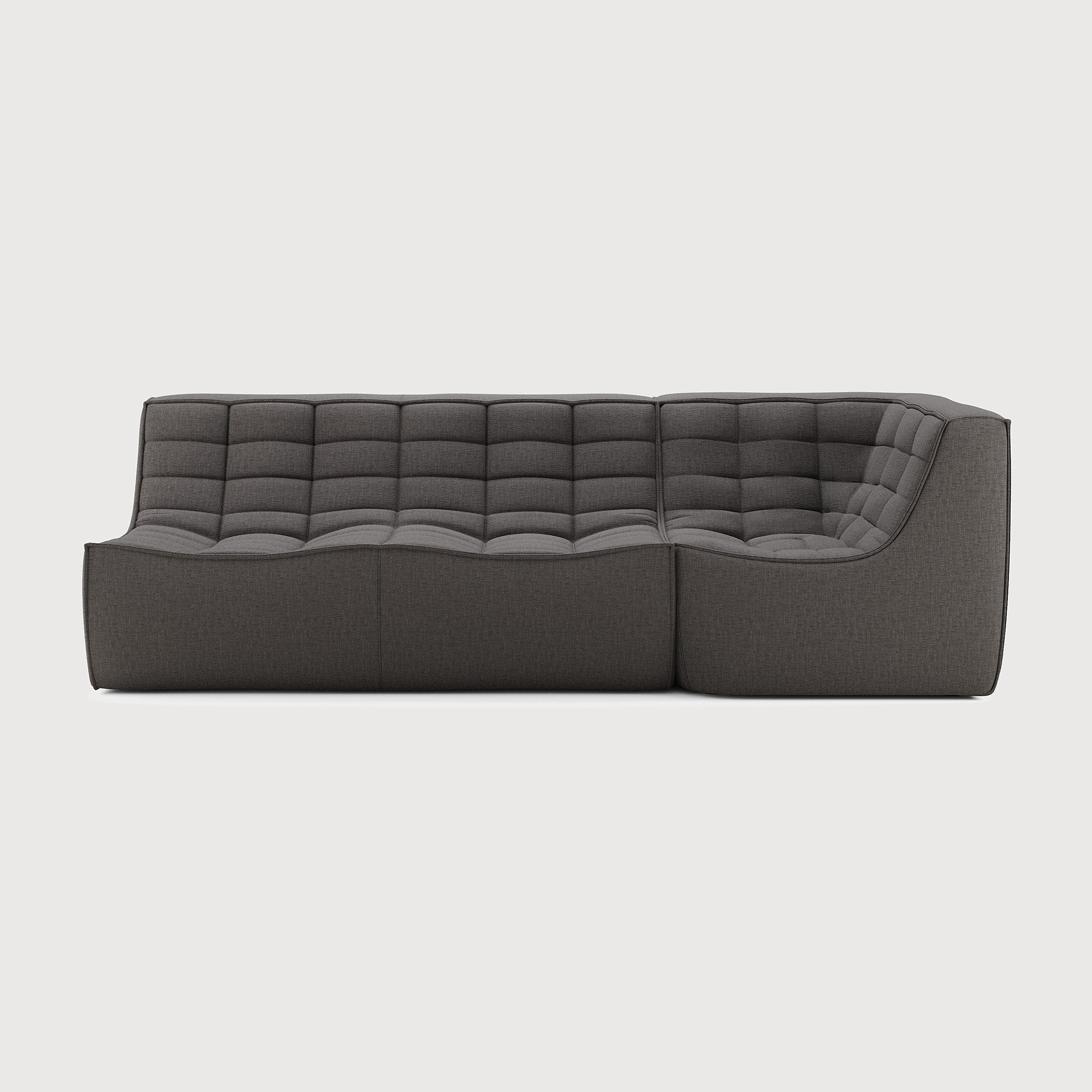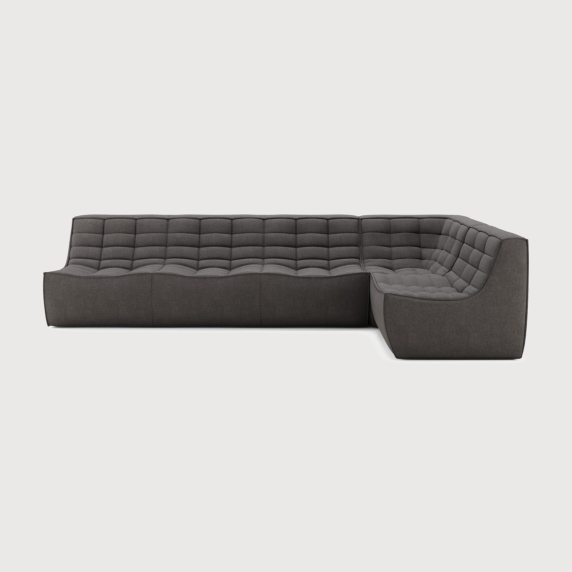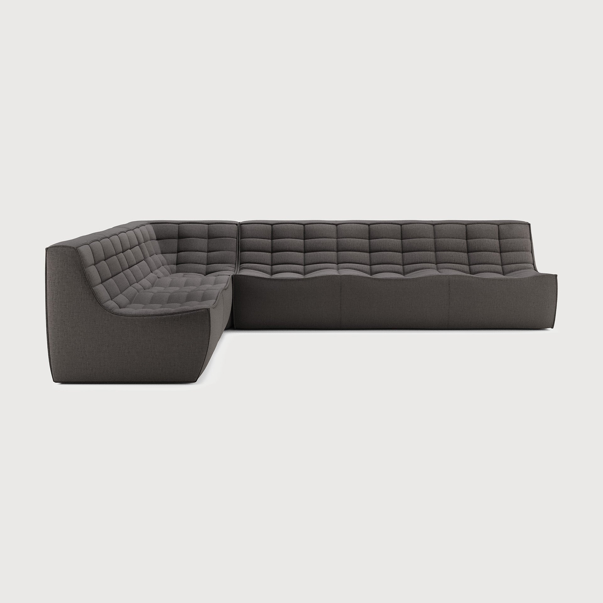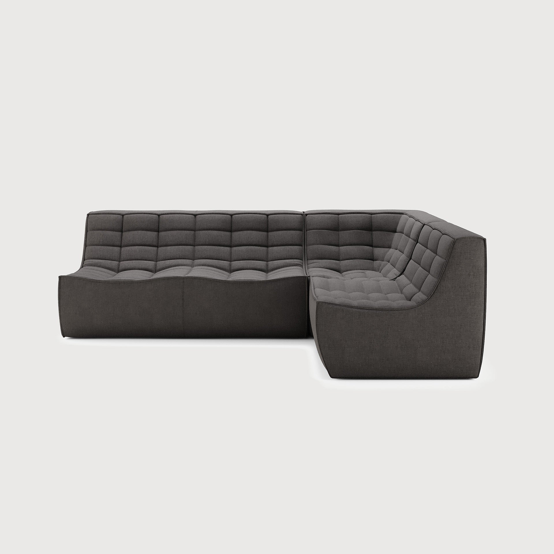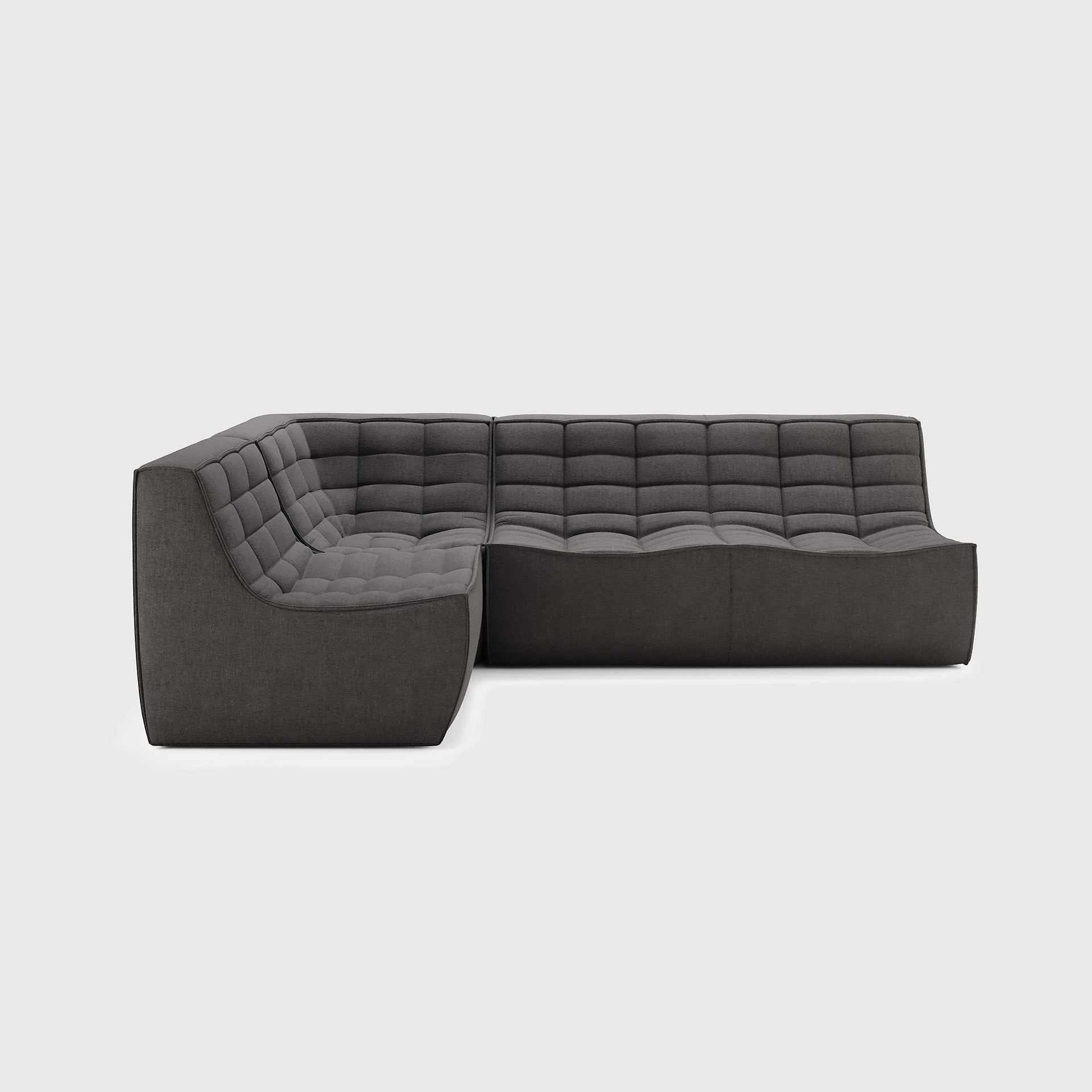 The N701 modular sofa by Ethnicraft captures a sleek, architectural silhouette defined by its 90° square corner, offering a harmonious blend of minimalist form and practical design. This dark grey fabric piece anchors a room effortlessly, its geometric precision inviting both intimate gatherings and spacious lounging with equal ease.