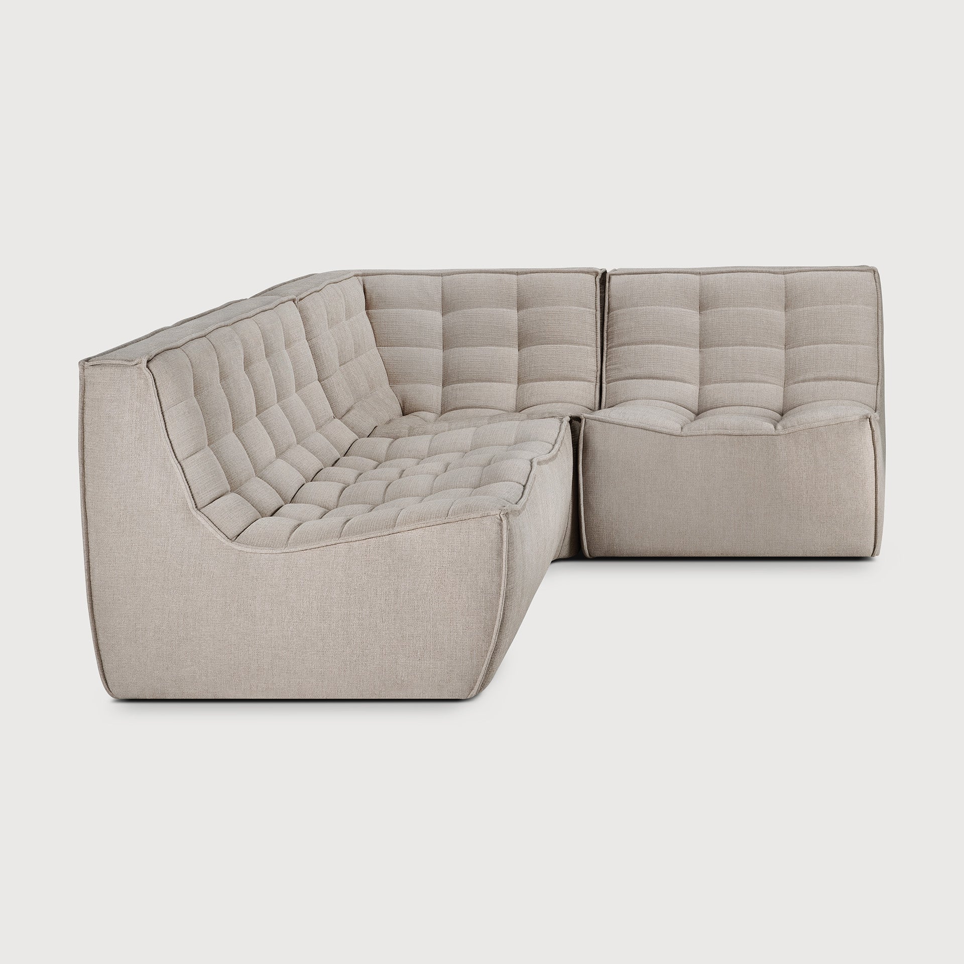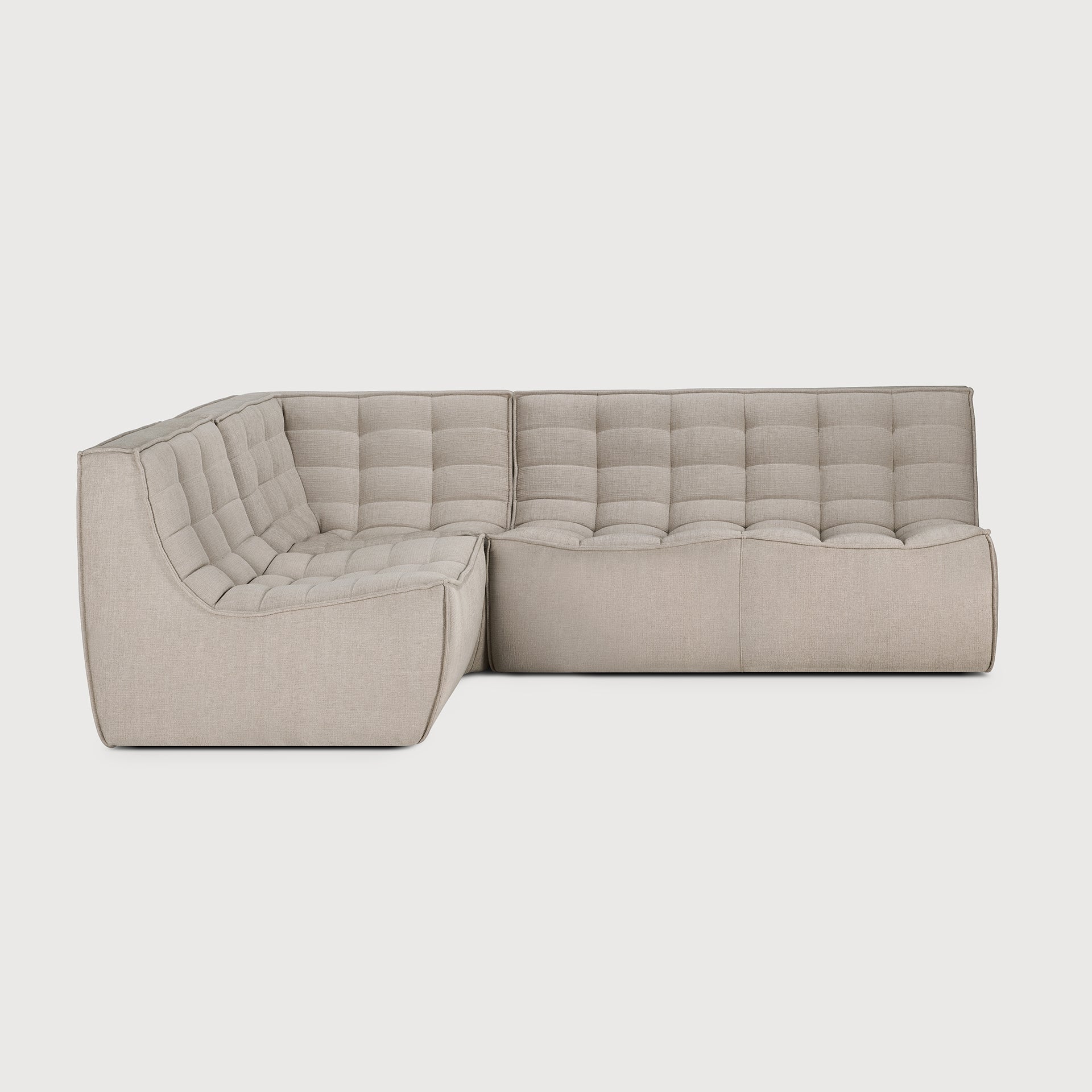 The N701 modular sofa by Ethnicraft presents a striking silhouette defined by its crisp 90° square corner, combining modern geometry with a welcoming, understated elegance. This piece embodies a thoughtful balance between structure and comfort, inviting relaxed gatherings or quiet moments in a living space shaped by clarity and calm.