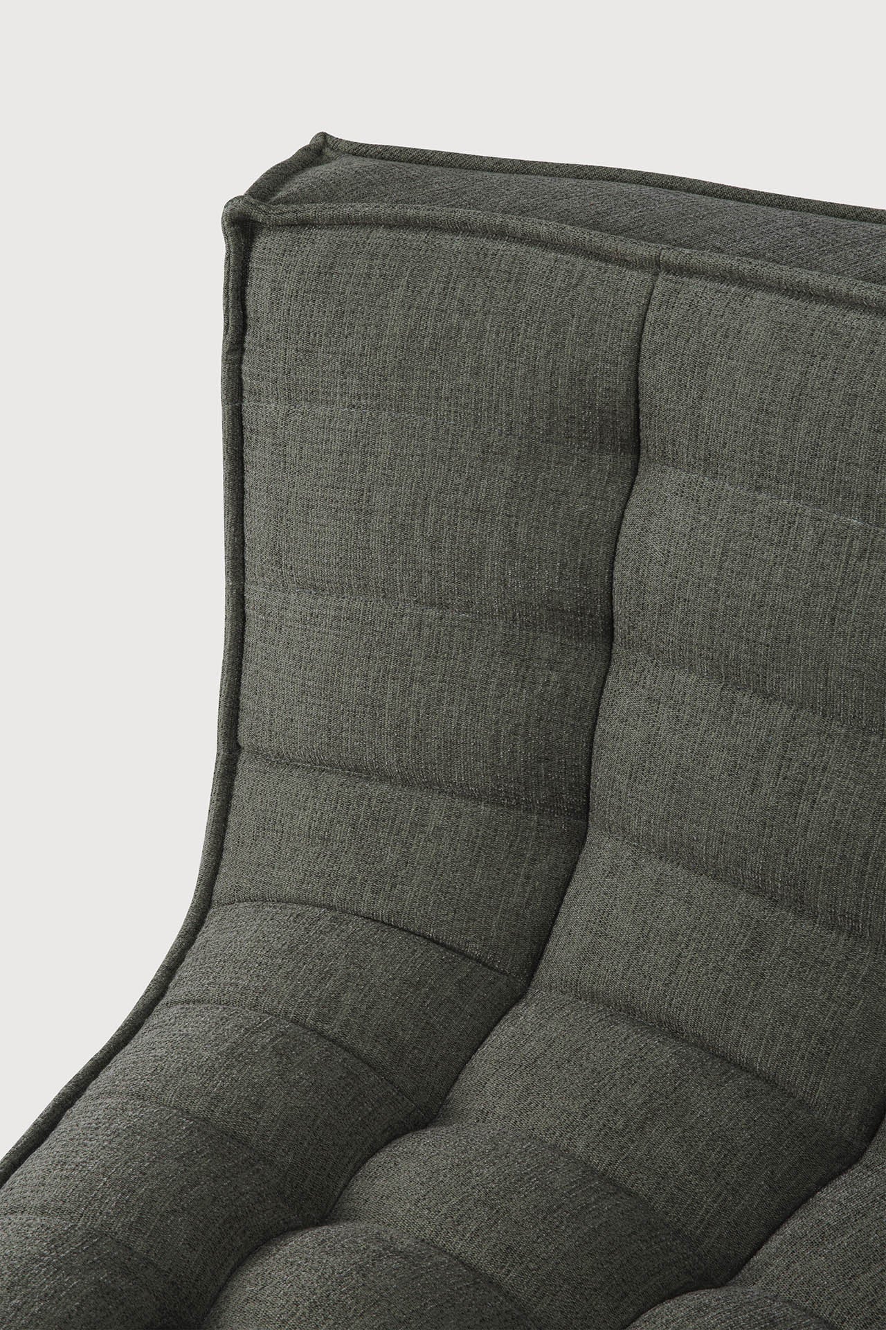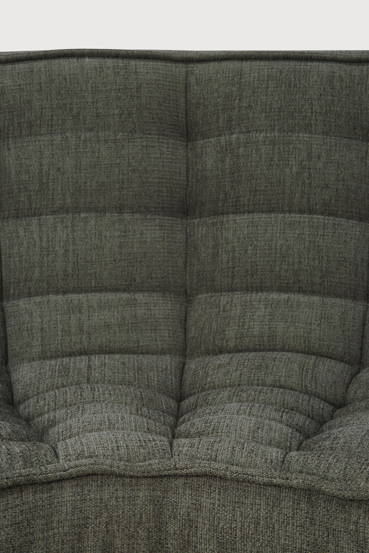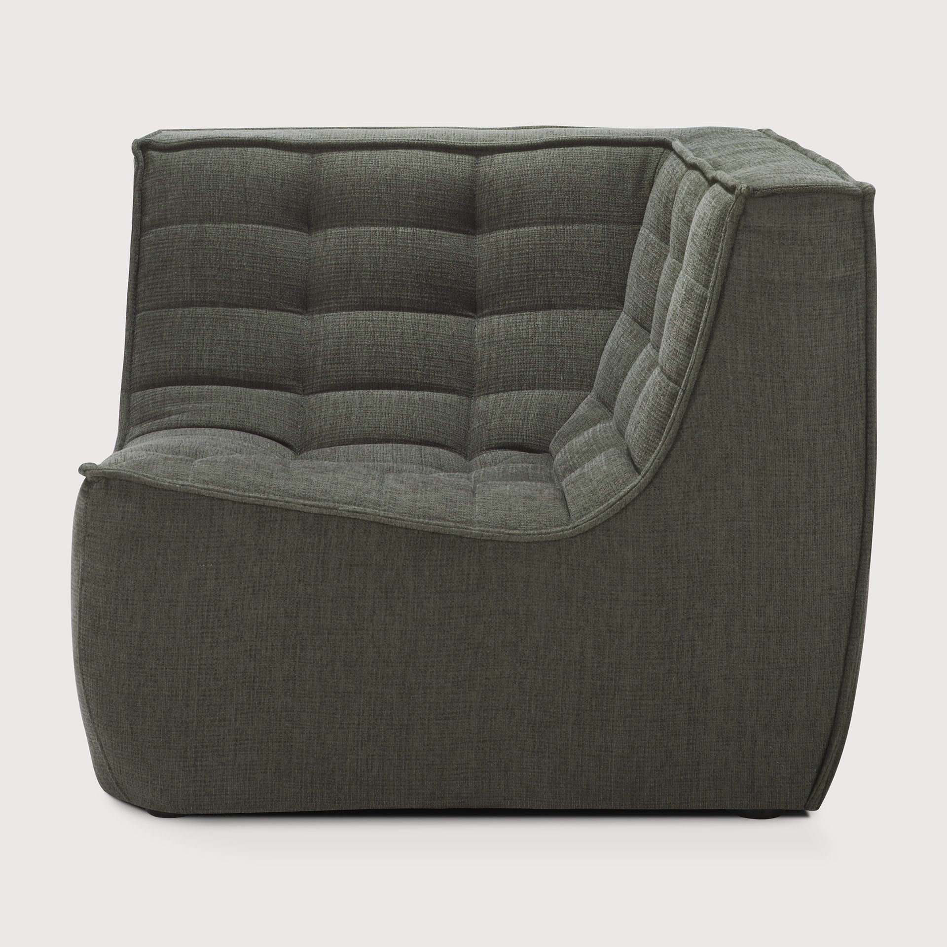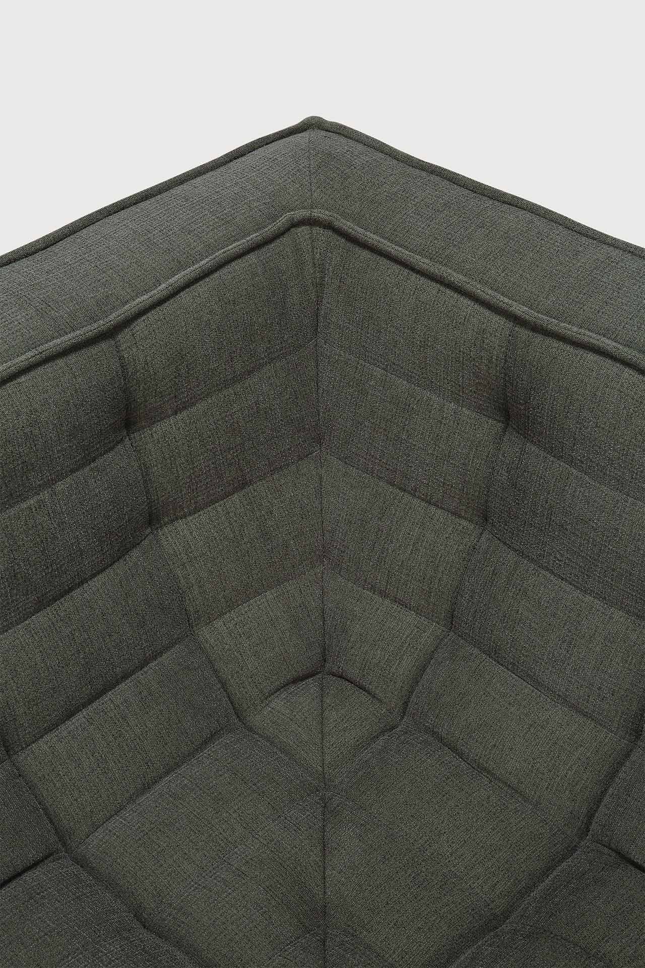 Wrapped in Moss Eco fabric, the N701 modular sofa by Ethnicraft invites a tactile experience defined by its soft yet durable weave, crafted for both comfort and longevity. The fabric’s distinct matte finish highlights the organic fibers and natural dye variations, lending an earthy, grounded character to the piece. This 90° square corner section is meticulously constructed with solid wood framing that ensures structural integrity while maintaining a light architectural presence.