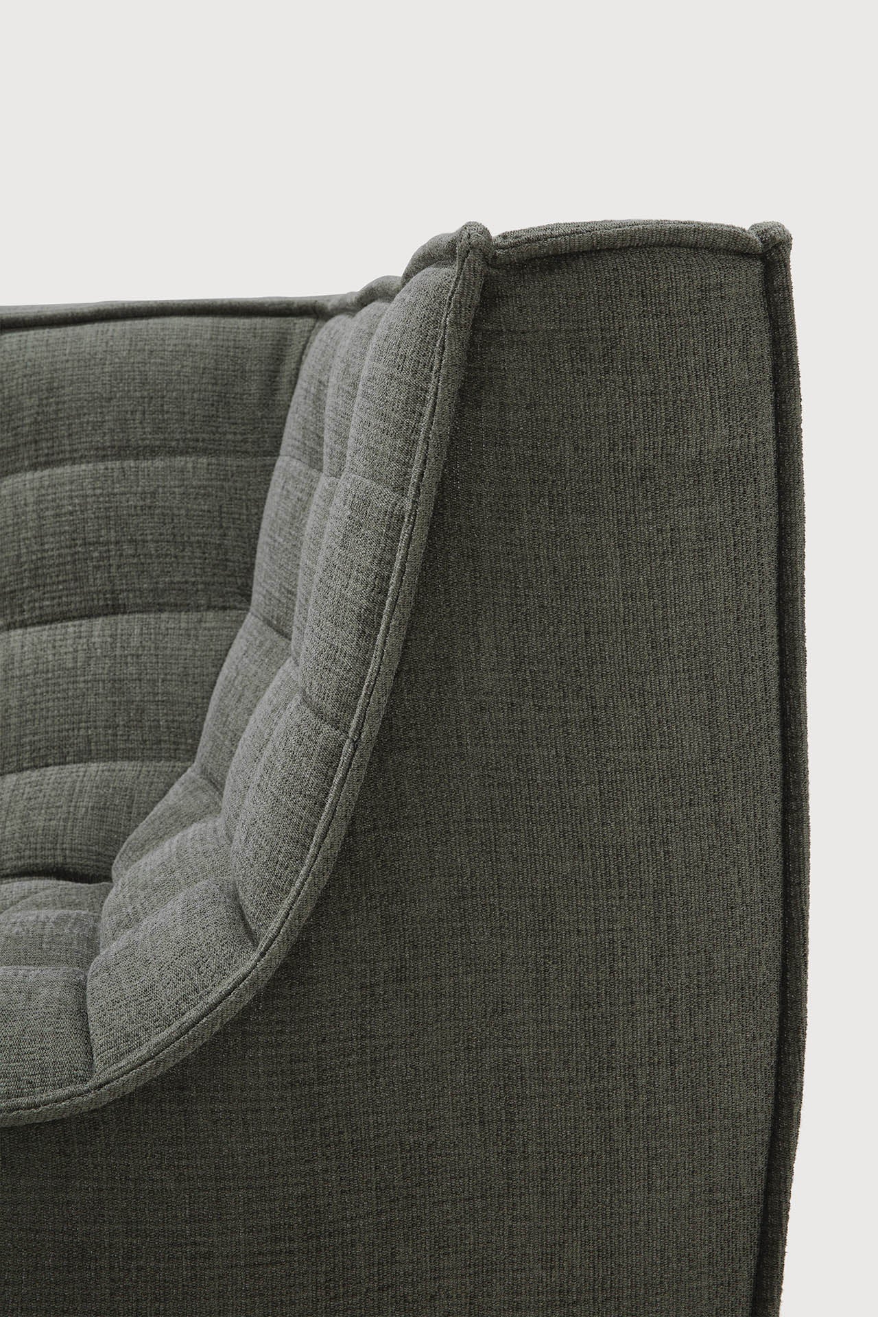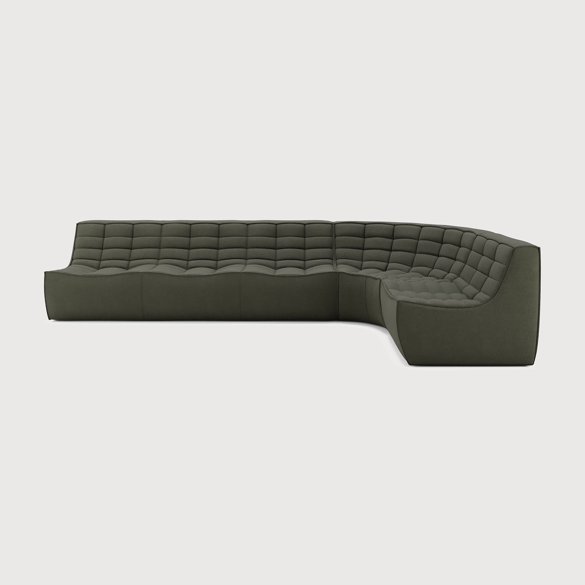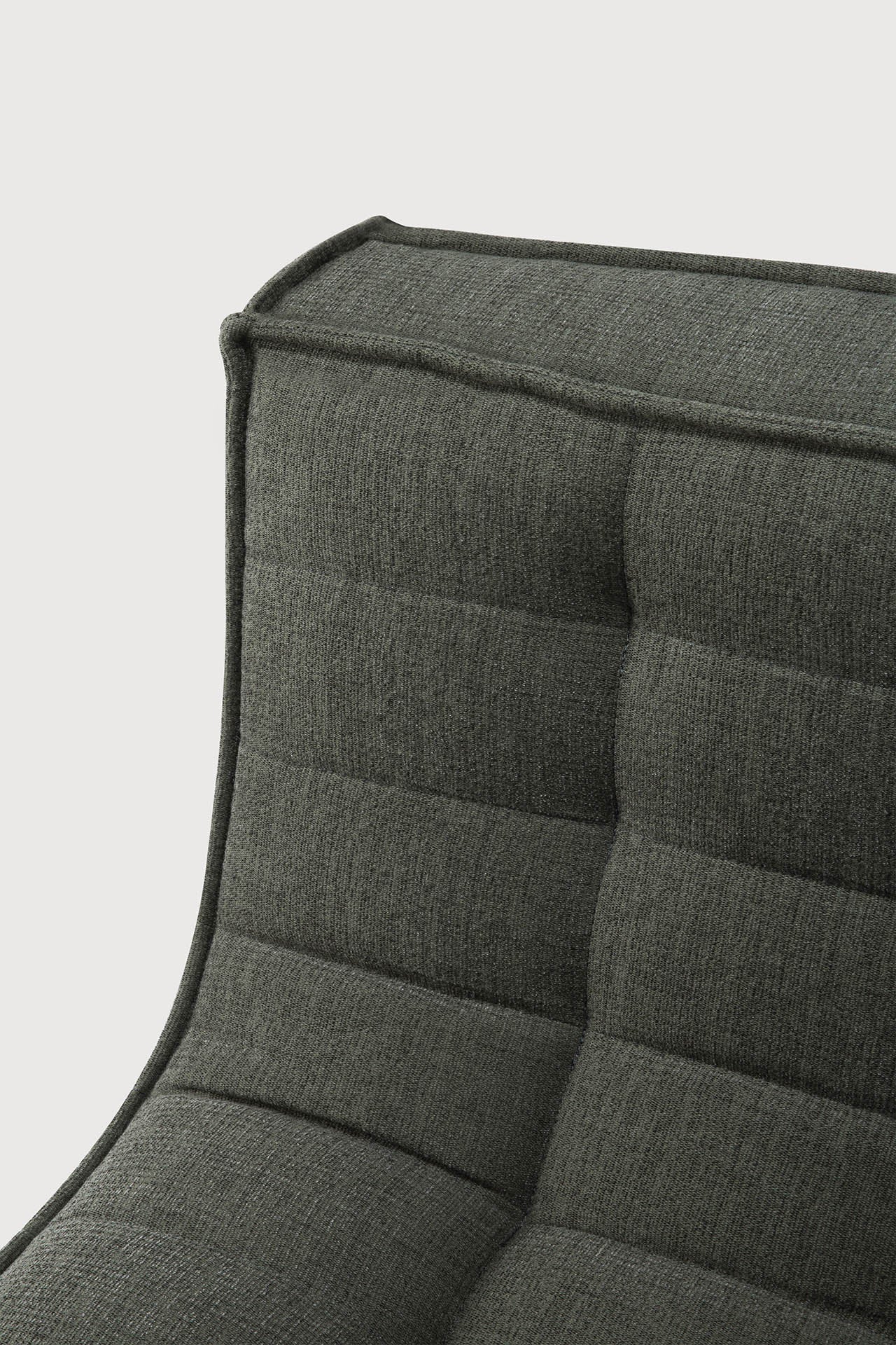Wrapped in Moss Eco fabric, the N701 modular sofa by Ethnicraft invites a tactile experience defined by its soft yet durable weave, crafted for both comfort and longevity. The fabric’s distinct matte finish highlights the organic fibers and natural dye variations, lending an earthy, grounded character to the piece. This 90° square corner section is meticulously constructed with solid wood framing that ensures structural integrity while maintaining a light architectural presence.