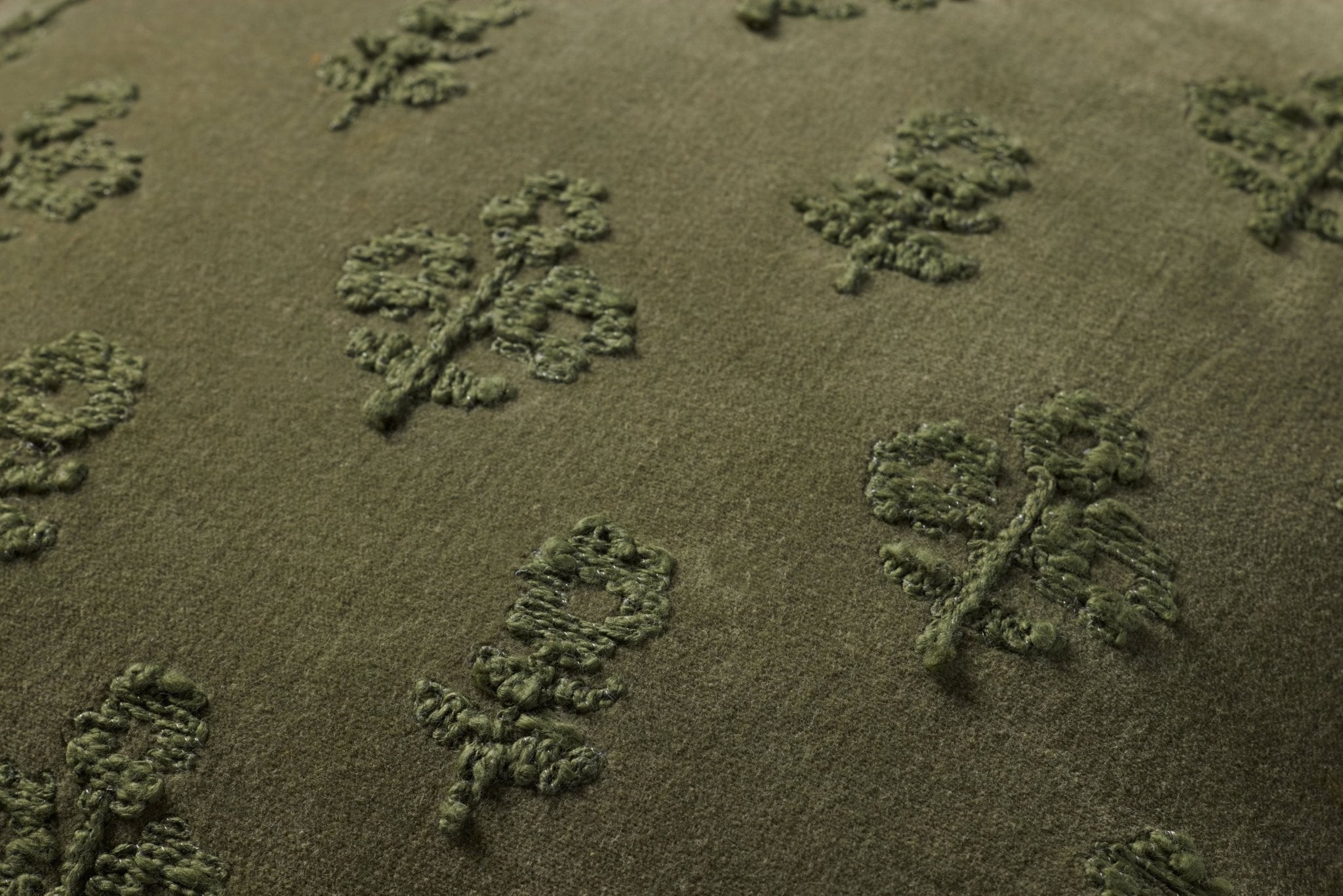 Darla is a deep olive green throw pillow from Chris Loves Julia x Loloi with embroidered motifs and fringed edges for a moody and elegant aesthetic. The pillow cover is made of 100% cotton and measures 18” x 18”, the perfect size to style in living rooms and bedrooms.