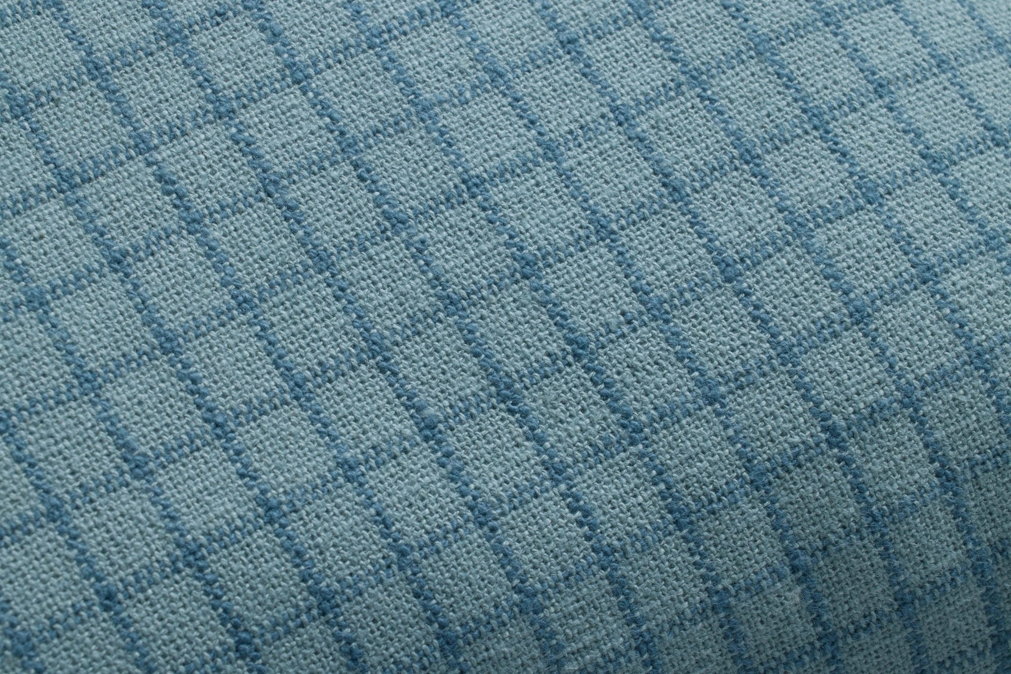 The ocean blue Dinah throw pillow from Chris Loves Julia x Loloi features a subtle gridded pattern framed with short ruffles for a sophisticated playfulness. The pillow is made of 100% cotton and measures 18” x 18”, a standard size to style in living rooms and bedrooms.