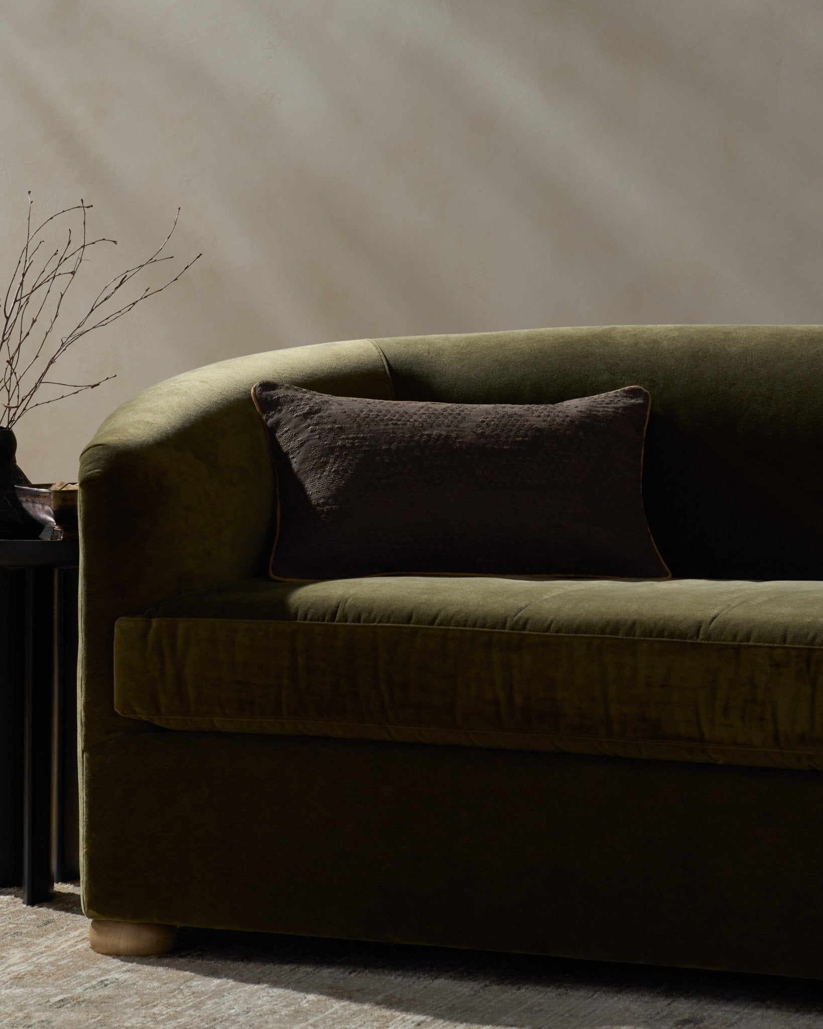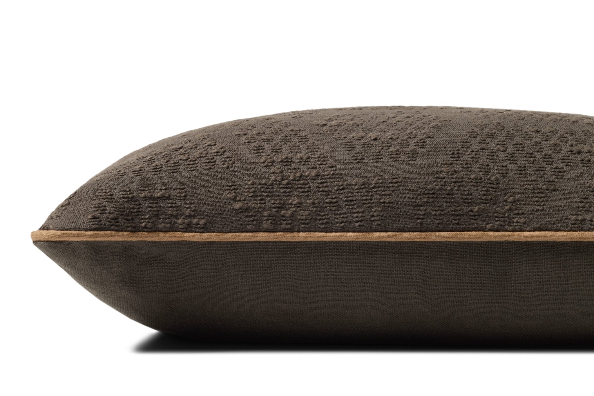 Leroy is a gently textured chocolate brown throw pillow designed by Jeremiah Brent x Loloi. The 13” x 21” lumbar pillow is made in India of 100% cotton, an expertly crafted accent for modern home decor.