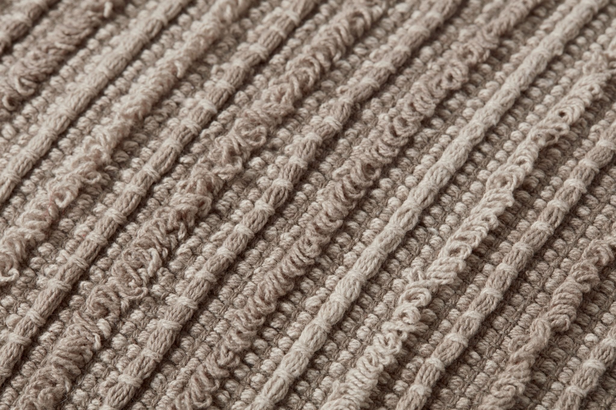 The handwoven Maura throw pillow features textured, vertical stripes in earthy brown tones. Designed by Jean Stoffer x Loloi.