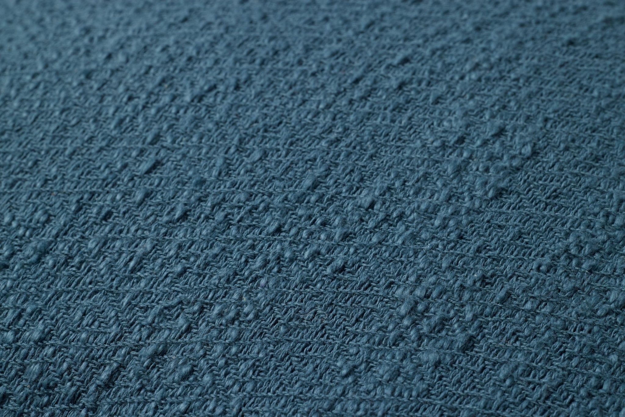 Morris is a dusky blue throw pillow from Chris Loves Julia x Loloi with a subtle diamond pattern and flange edges. The pillow cover is made of 100% cotton and measures 22” x 22”, a versatile size to style in living rooms and bedrooms.