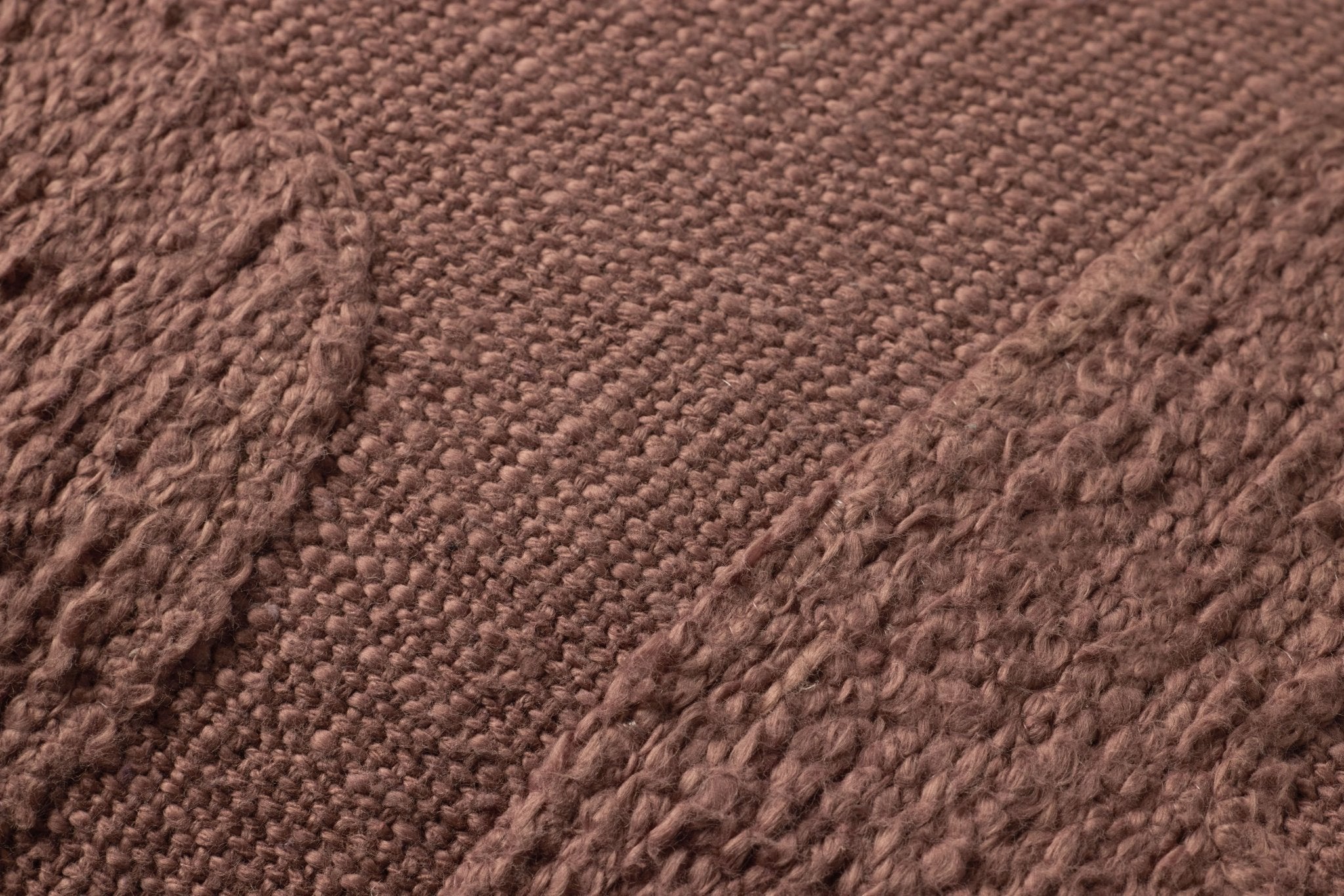 PBR0020 Mauve is an embroidered throw pillow from Brigette Romanek x Loloi with a gently textured earthy mauve abstract design. The long pillow cover is machine embroidered of cotton in India and measures 12” x 27”, a versatile living room, bedroom, or accent pillow.