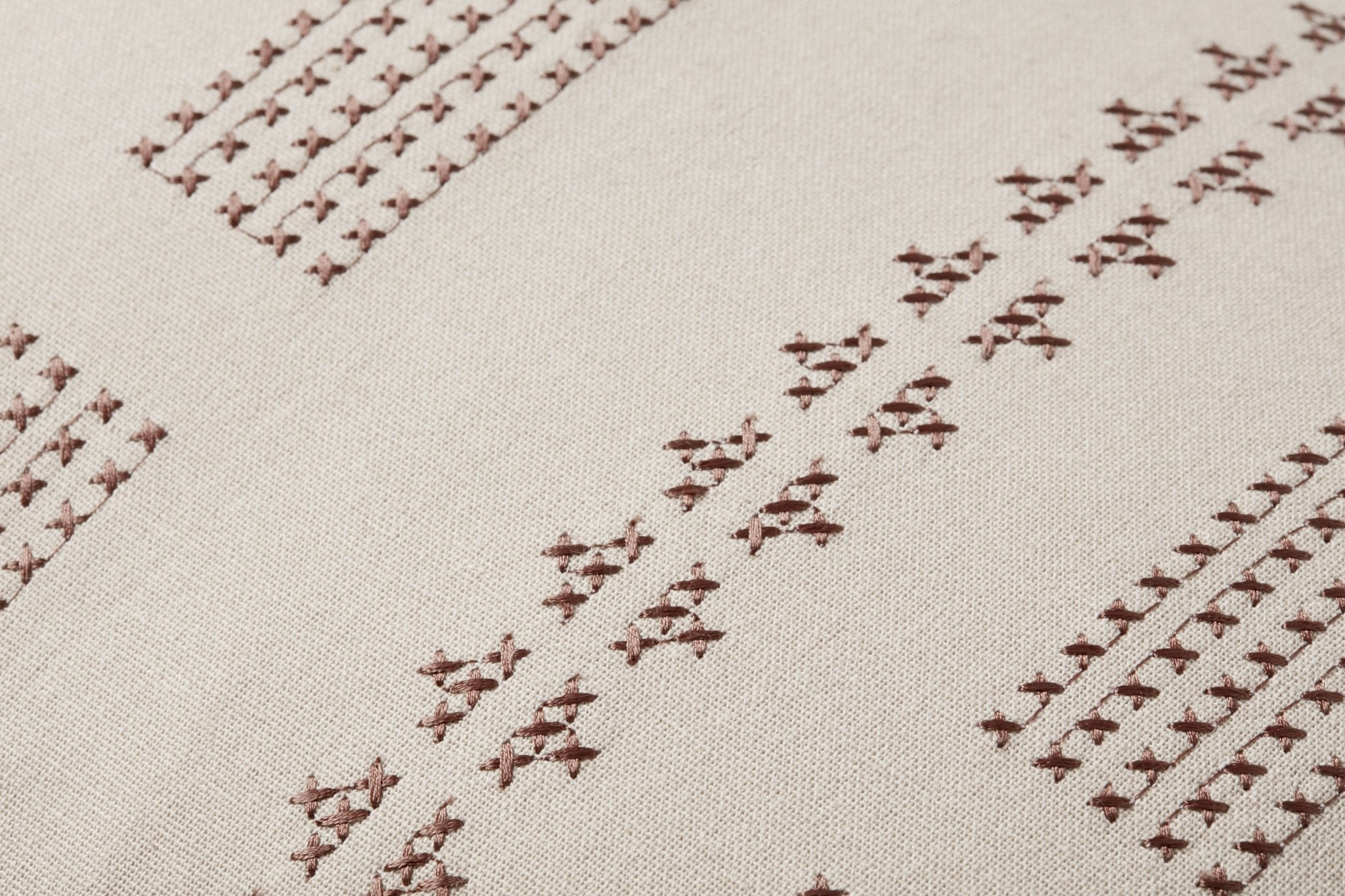 The Thomas throw pillow features intricate geometric embroidery that draws the eye toward this plush lumbar cushion. Designed by Jean Stoffer x Loloi.