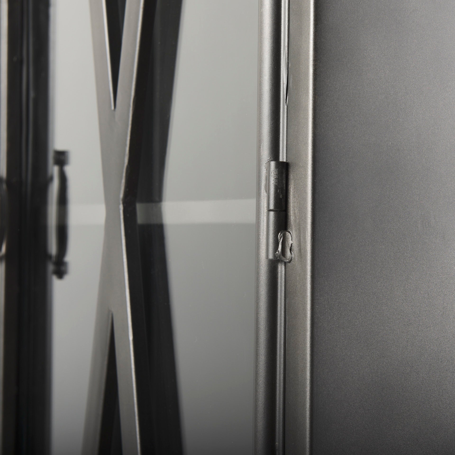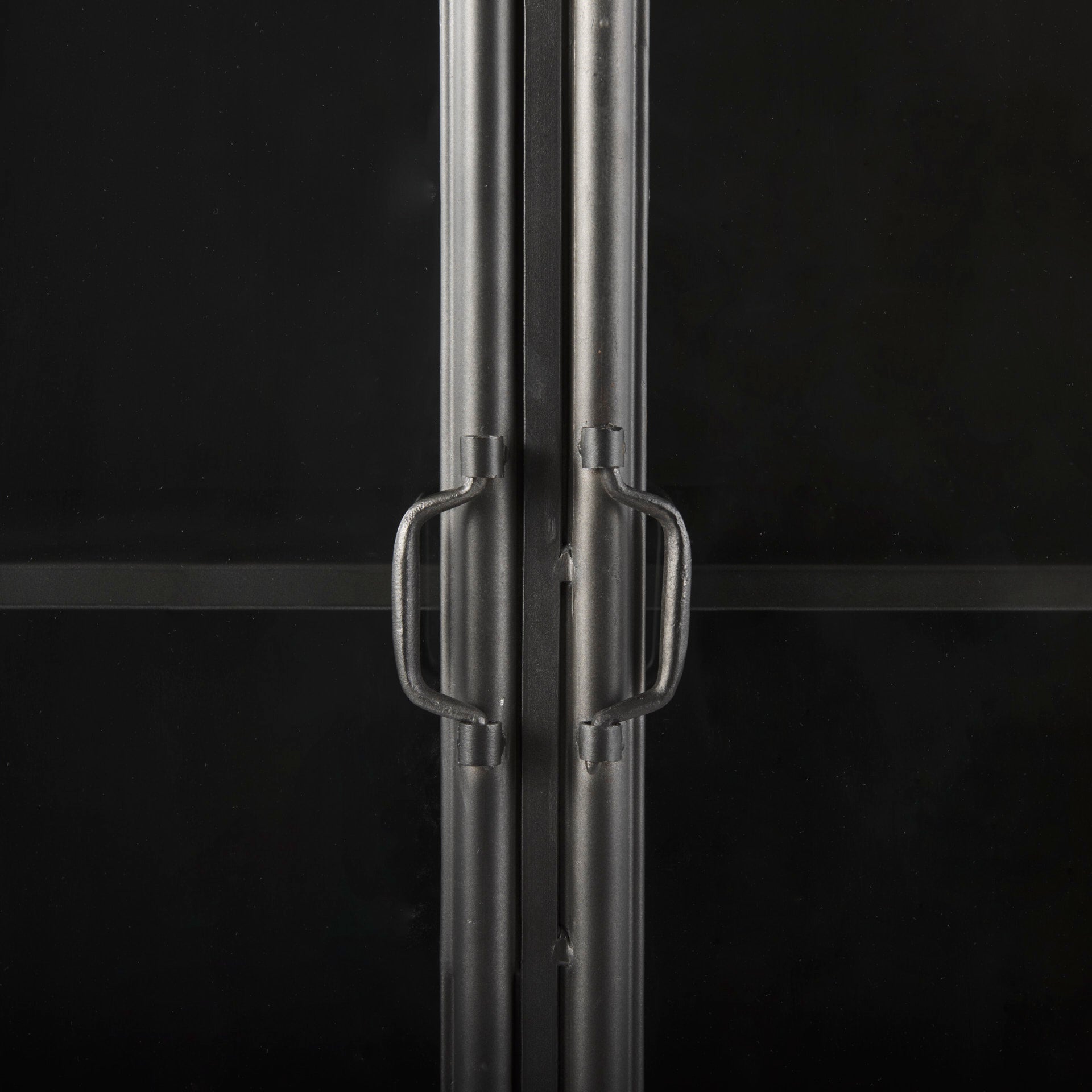 Hazel Curved Cabinet – Made from metal, the II is a full-size display cabinet featuring two large glass-lined doors. Behind the glass doors is ample storage space and four shelves to display all your favorite décor items. For added convenience, the doors on the II are equipped with pivoting door handles and a locking mechanism to ensure the doors stay closed. The II is a favorite choice for spaces based on the Industrial design style.