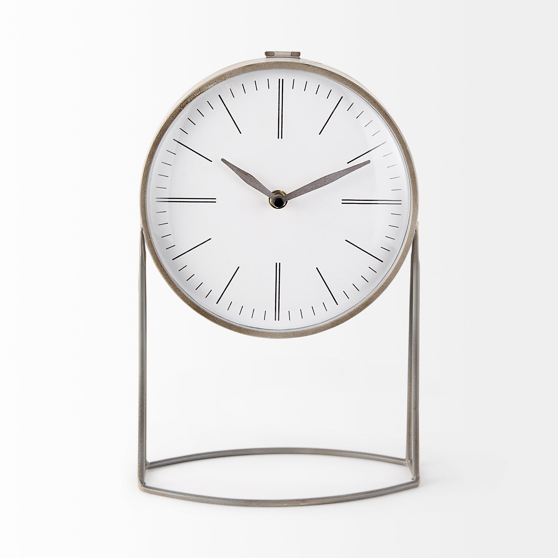 Olivia Textured Table Clock – Featuring a tastefully designed, matte-grey toned metal base, the is a stylish table clock with a minimalistic, white-toned face and clean markings. Equipped with a quartz movement for accurate timekeeping, the requires a single AA battery for operation.