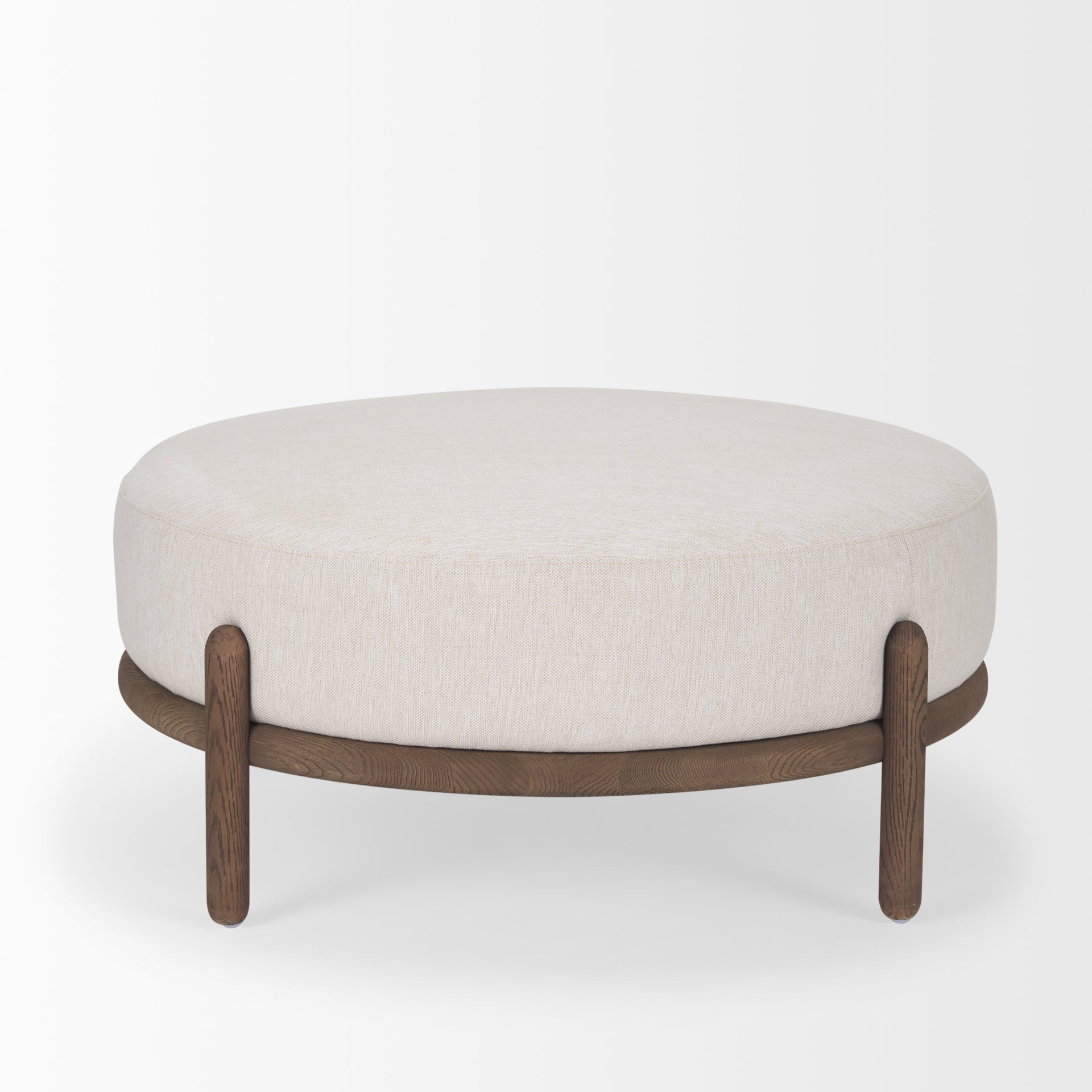 Bertha Upholstered Ottoman – The Bertha Ottoman exudes charm and warmth, thanks to its plush, generously padded seat. Wrapped in neutral oatmeal upholstery, the cushioned seat is nestled within a wooden frame. Crafted from beech wood and finished in a rich dark brown, its four legs and support frame showcase exquisite craftsmanship with smoothly contoured, rounded edges. The Gwynn is the perfect accent to add style and additional seating. Part of the Bertha Collection.