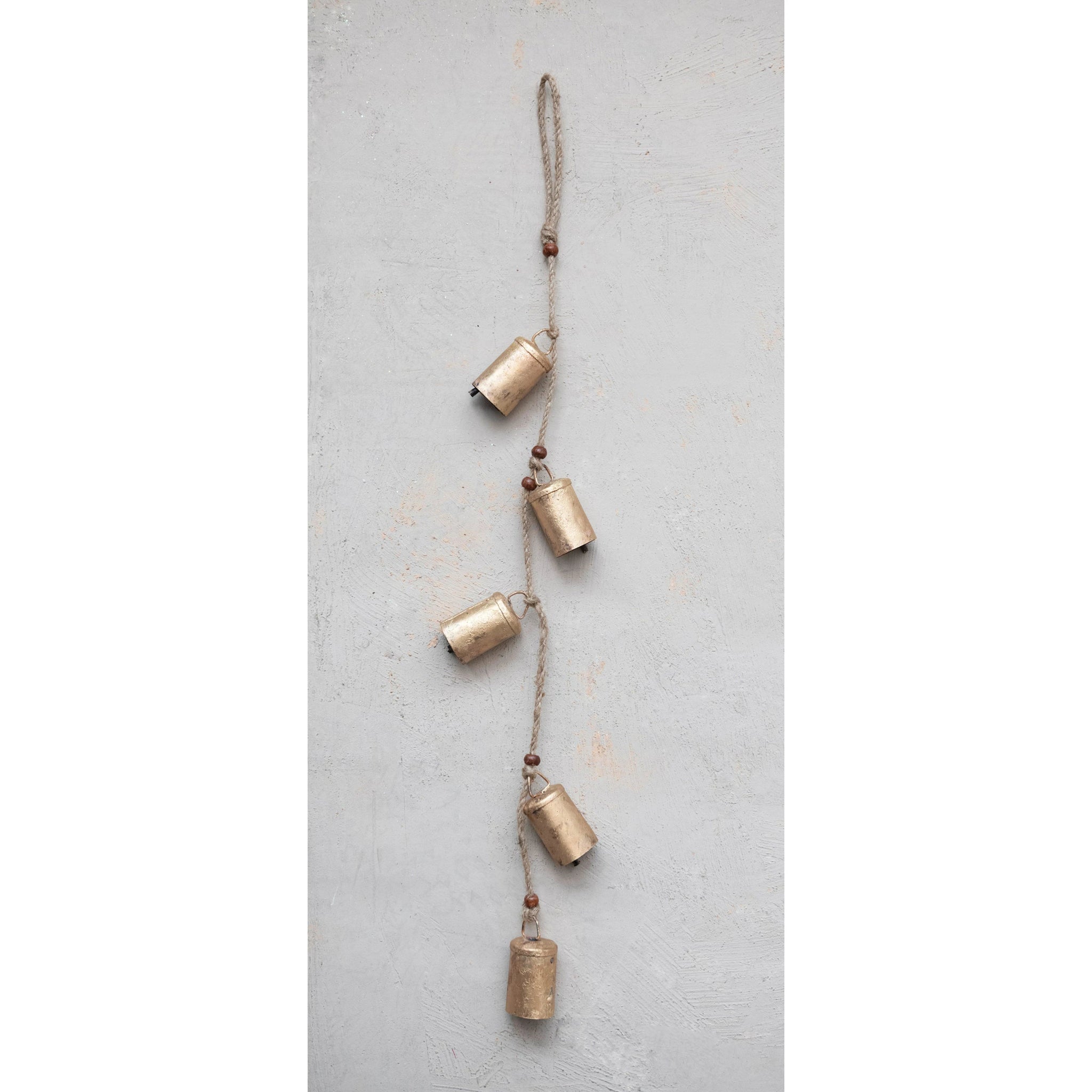 This garland is a beautiful addition to any festive home. Made out of iron bells, jute, and beads garland has a gold finish that goes with any decor styles. This garland can be used on staircases, mantles, or trees for an easy and stylish festive display.