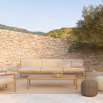 Crafted with meticulous attention to detail, the Donut outdoor pouf by Ethnicraft showcases a natural check fabric that merges durability with understated elegance. The textured weave of the fabric offers a gentle, tactile richness, designed to withstand outdoor elements while maintaining a soft, inviting feel underhand. Its subtle interplay of muted earth tones creates a visual rhythm that feels both organic and carefully curated.