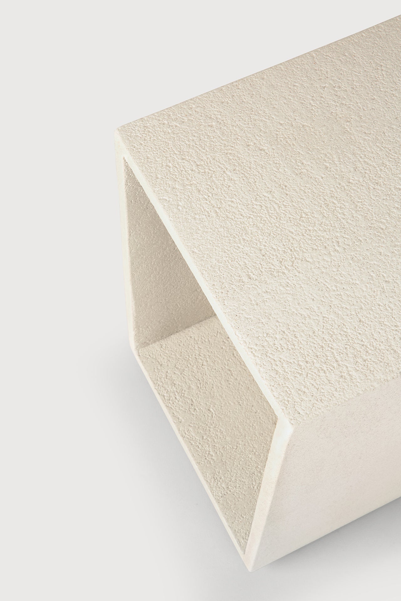 The Elements bedside table seamlessly blends modern artistry with everyday utility, offering a versatile accent that enhances serene, contemplative environments. Its subtle off-white tone lends a sense of calm and purity, making it a refined companion for bedrooms aiming for a contemporary yet warm ambiance. Perfect for modern, minimalist, or Scandinavian-inspired interiors seeking a functional piece with textural depth.