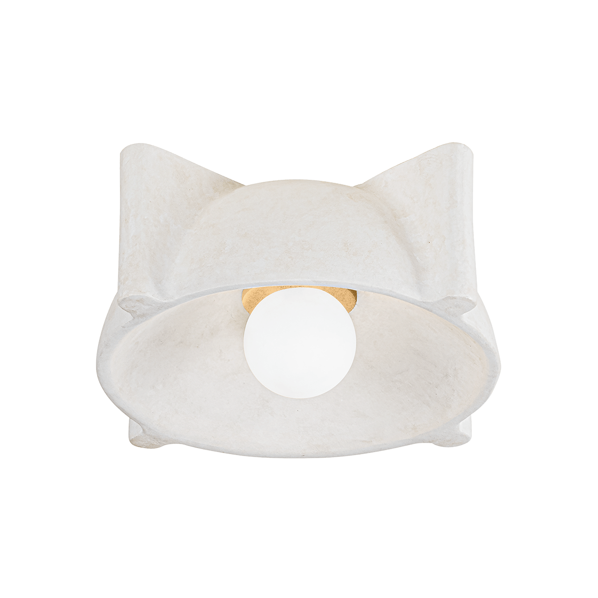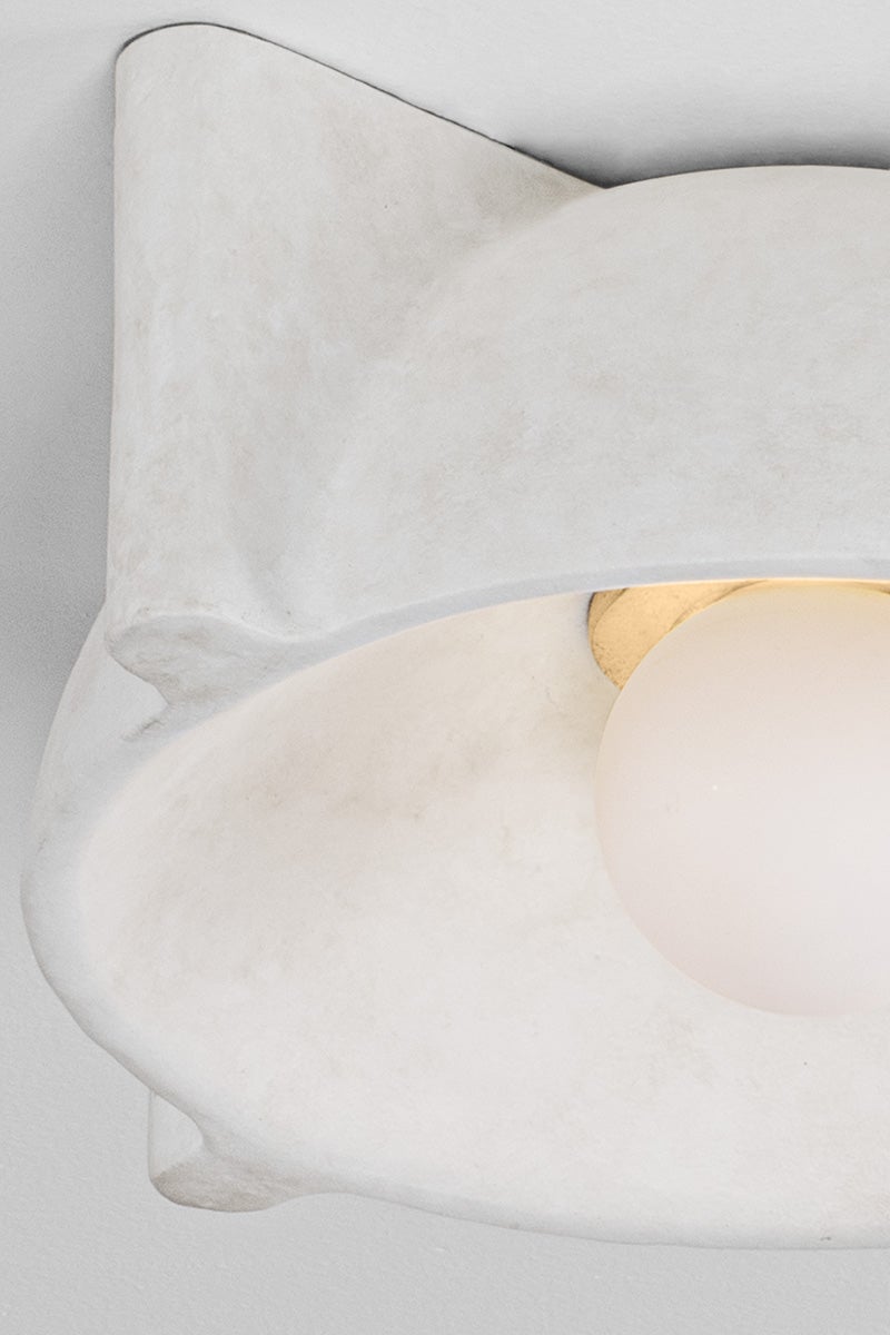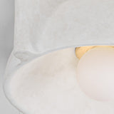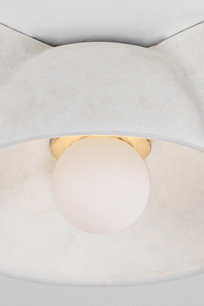 Inspired by nautical lighting, the Francis Flush Mount Ceiling Light blends clean modern styling with warm, natural materials. This ceiling lamp features a finned dome-shaped shade in a fossil white ceramic finish, giving it a textured, weathered look. Minimal vintage gold leaf hardware details add just a hint of shine, enhancing its unique appeal. With an exposed bulb and modern silhouette, the Francis Flush Mount Ceiling Light is perfect for flush mount kitchen lighting and a contemporary style that adds character and charm to any space.