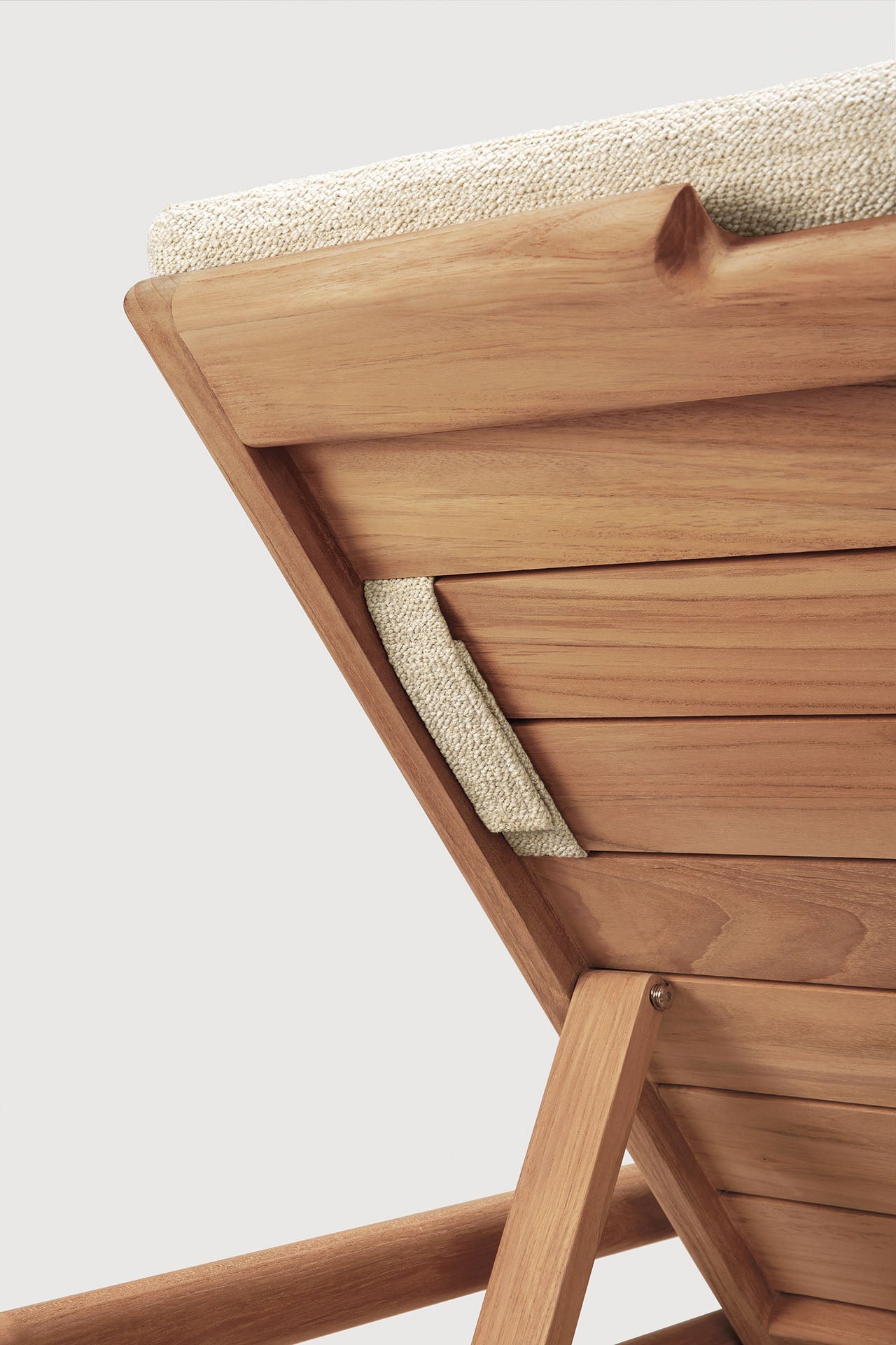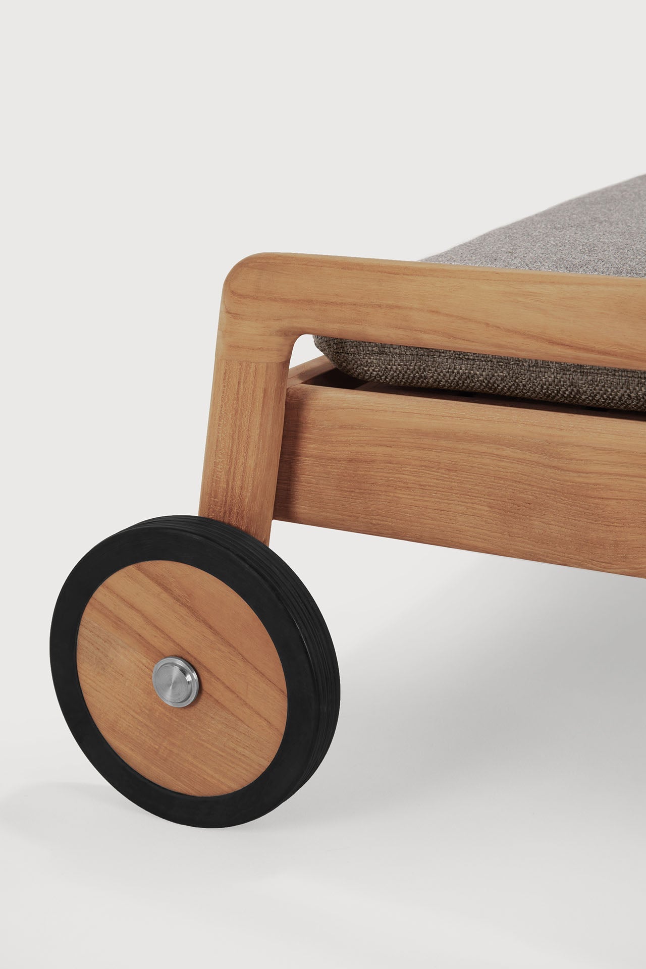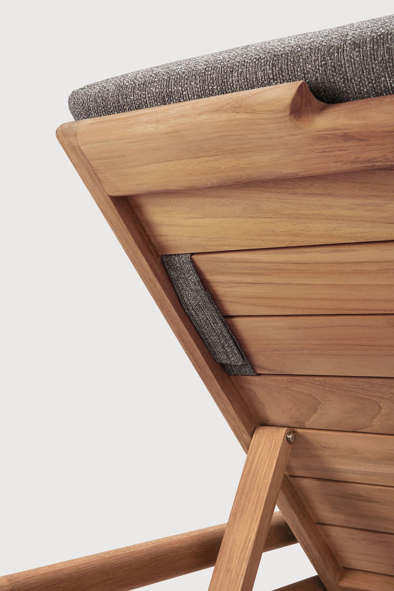 Designed for unparalleled outdoor comfort, the Jack outdoor adjustable lounger frame by Ethnicraft offers effortless relaxation with its smooth reclining mechanism. Crafted from responsibly sourced teak, this lounger frame resists the elements while developing a graceful patina over time. Its sturdy construction ensures lasting durability, making it a perfect companion for sunny afternoons by the pool or serene evenings on the terrace.