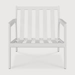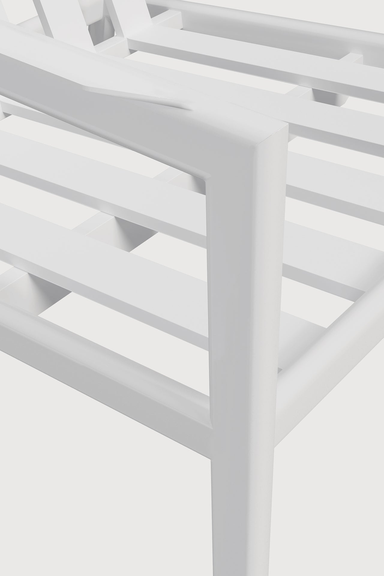 The Jack outdoor lounge chair frame by Ethnicraft redefines modern comfort with a sculptural silhouette that commands attention. Crafted from powder-coated aluminium in a crisp white finish, this chair presents a striking contrast against lush greenery or a sleek urban terrace. Its slender profile is simultaneously sturdy and light, embodying a delicate balance between durability and effortless style. The gently curved armrests and low-slung seat frame suggest an inviting repose, while the meticulous welding and powder coating ensure resilience against the elements without compromising aesthetic integrity.