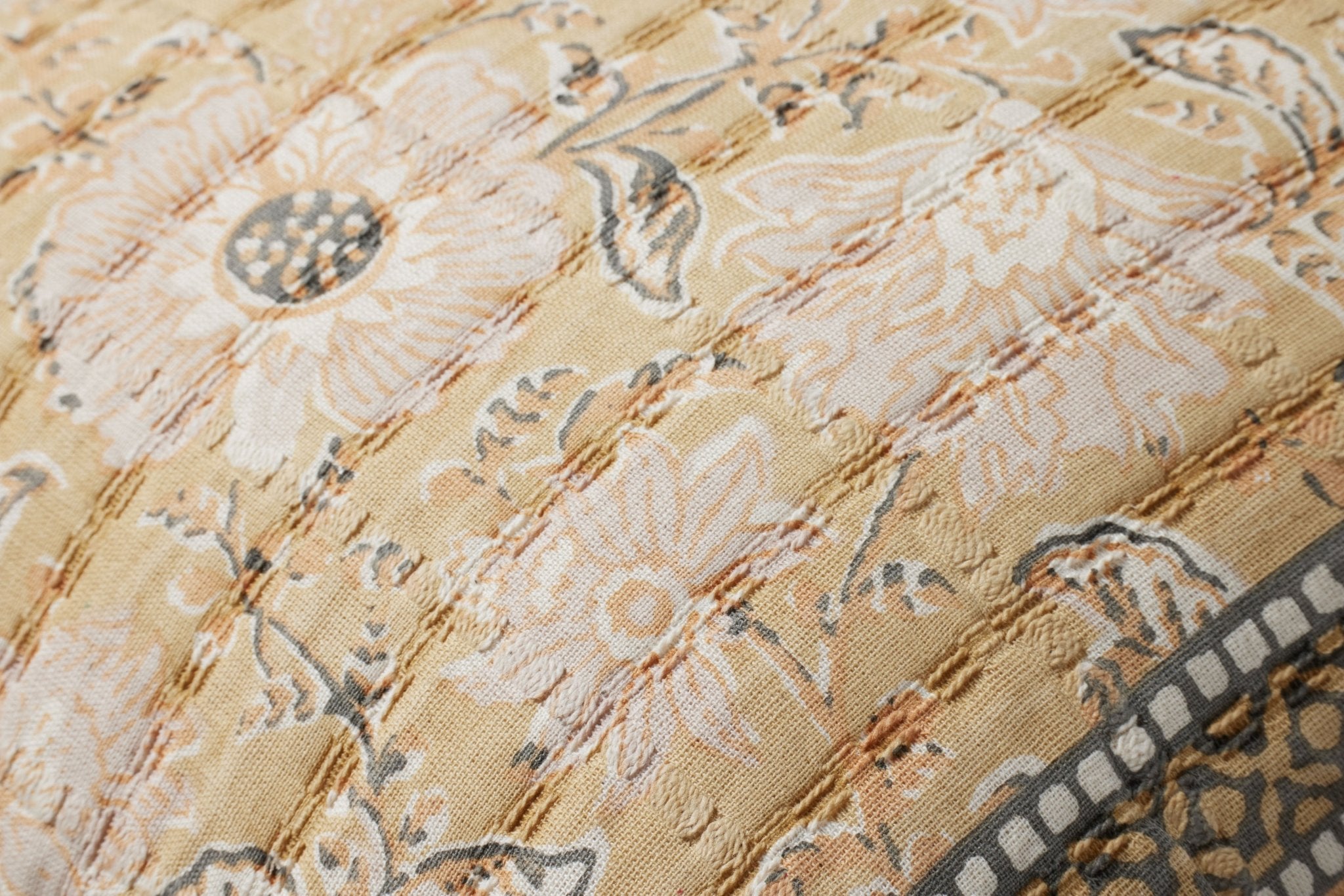This charming throw pillow features a delicate floral print in soft, warm hues, creating a cozy, vintage-inspired look. Accented with corner tassels and intricate border details, it adds a touch of bohemian elegance to any room.