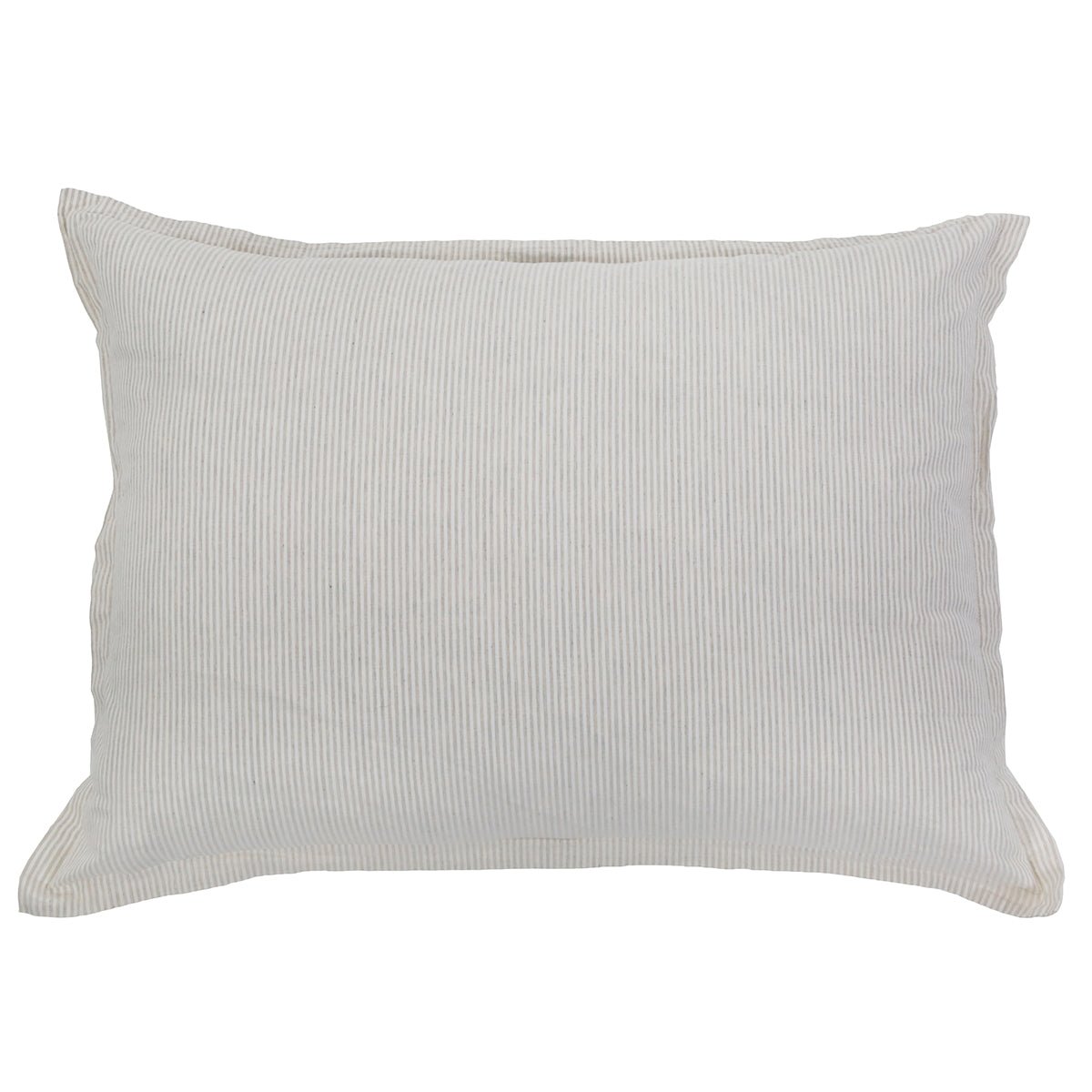 The Luke collection features small gentle stripes on both sides of the crisp cotton. Along with a 1 inch finished flange all along the edge of the duvet and shams. Made of 100% cotton, featuring shell-button closures. Made in Portugal.