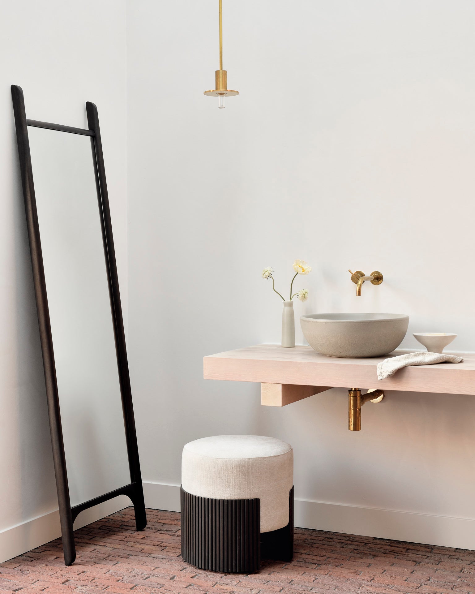 Crafted from solid mahogany, the PI floor mirror showcases a varnished finish that accentuates the wood’s natural grain, imparting a rich, dark brown warmth to any space. The frame’s surface is meticulously sanded to a smooth, satiny texture, inviting a tactile engagement that complements the mirror’s sleek rectangular silhouette. Subtle bevels along the inner edges of the frame create a nuanced interplay of light and shadow, adding depth and dimension to the overall design without overwhelming its minimalist structure.