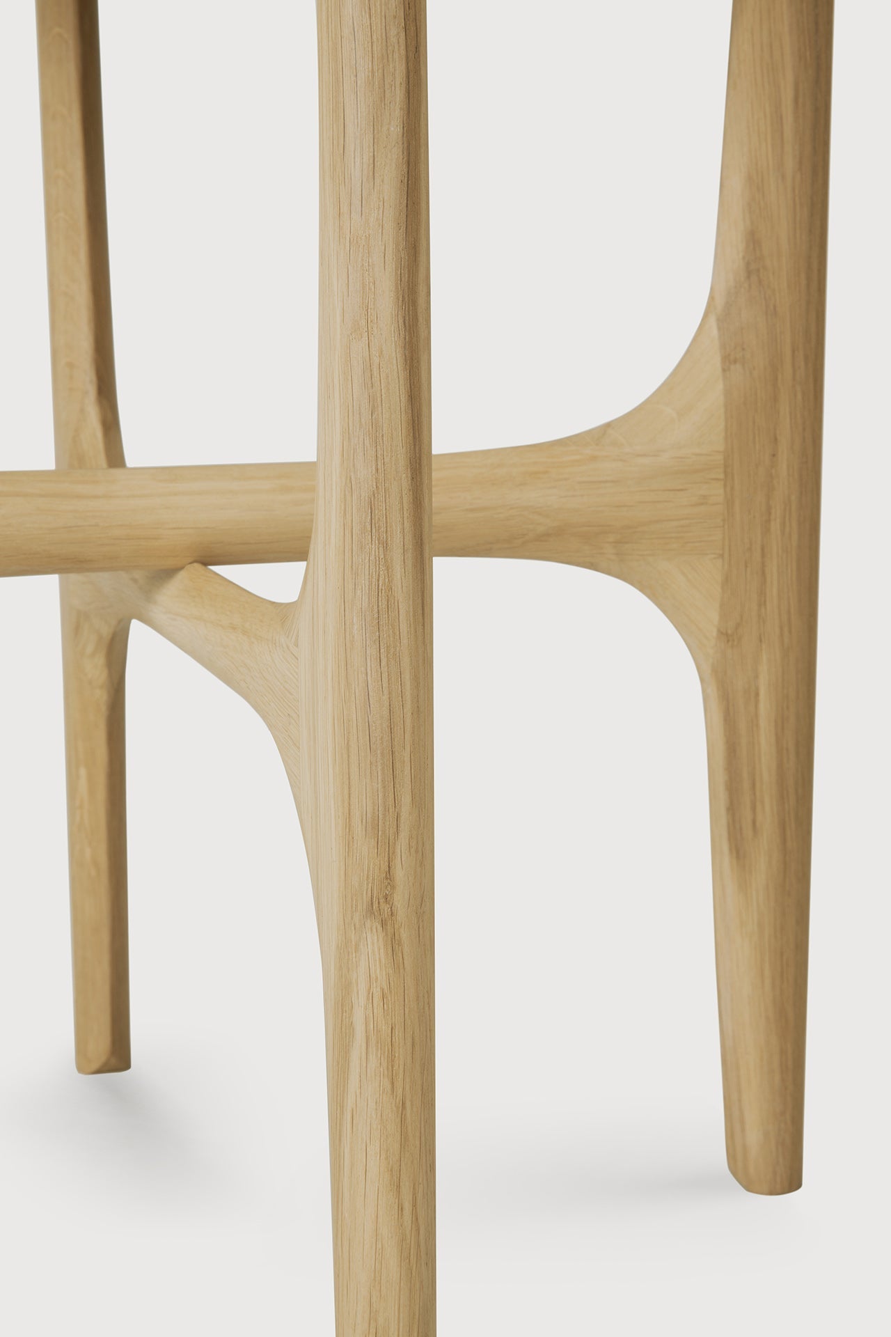 Crafted from solid European oak, the Ethnicraft PI side table showcases the inherent beauty of natural wood grain through a meticulous hand-oiled finish that accentuates depth and warmth. The surface is smoothly sanded to a satiny touch, inviting a sense of tactile connection that complements its visual appeal. Its round top, subtly beveled along the edge, enhances the organic form while lending a gentle refinement to the silhouette.