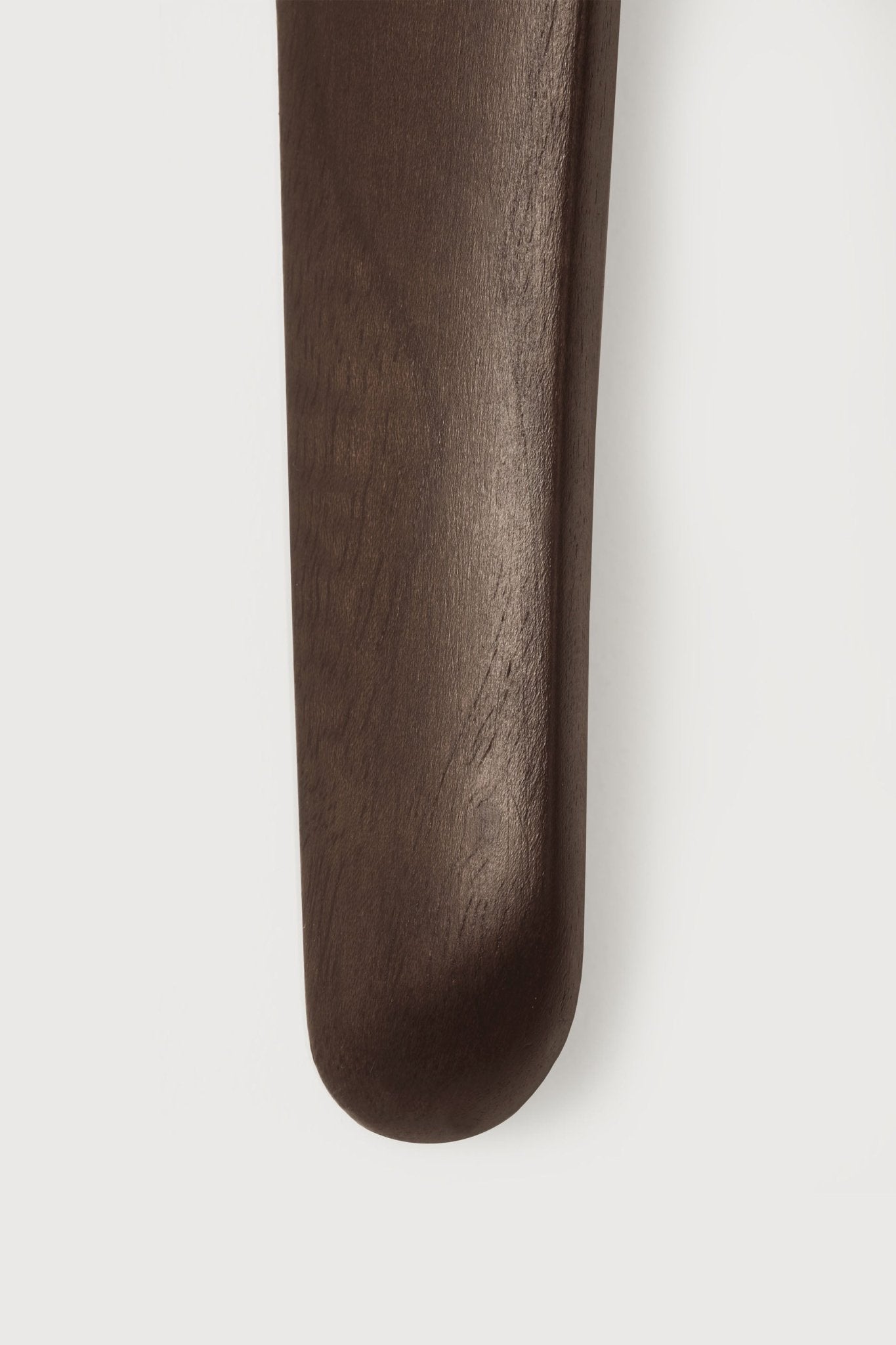 Crafted from rich mahogany wood, the PI wall hanger set by Ethnicraft showcases the natural beauty of dark brown tones enhanced by a meticulous varnish finish. Each hanger is carefully sculpted to reveal the wood’s characteristic grain, offering a tactile and visual warmth that complements a variety of interior palettes. The smooth, polished surface catches the light subtly, lending an understated elegance that accentuates both classic and contemporary spaces.